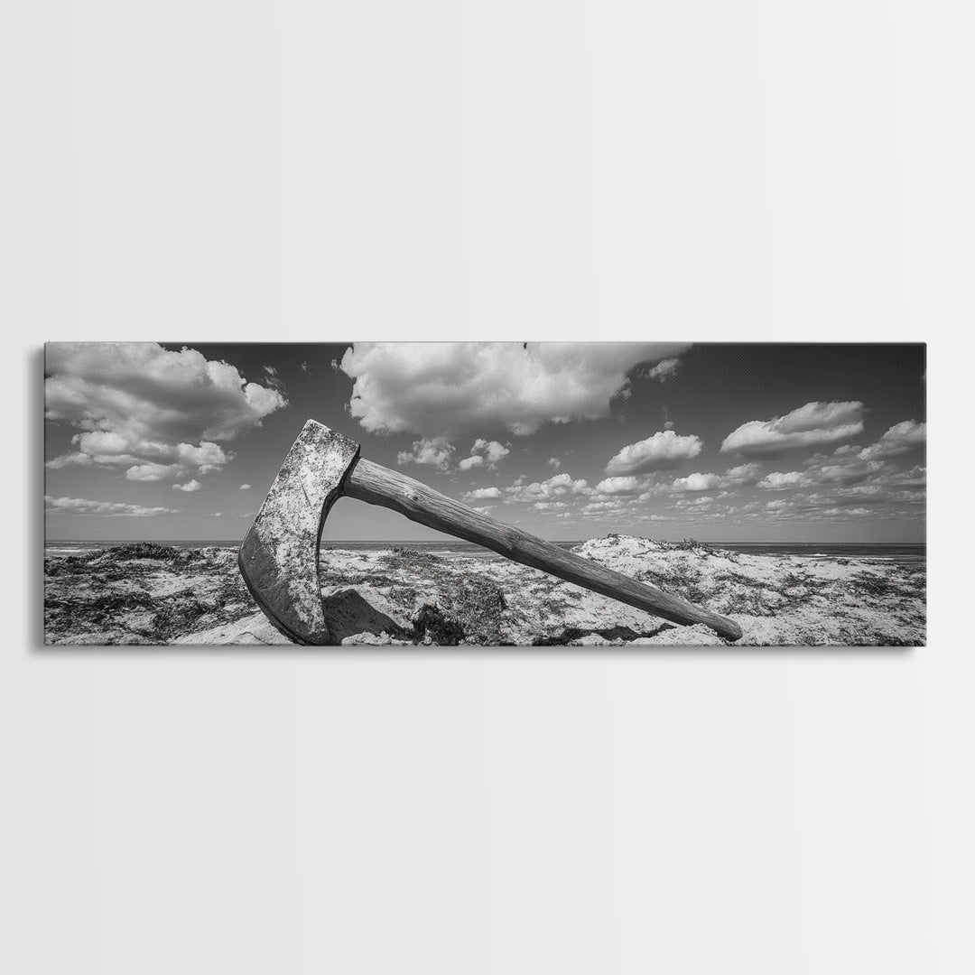 Rustic Axe, Vintage Tool, Desert Survival, Woodworking Decor, Framed Canvas Print, Man Cave Wall Art, Autumn Cabin Vibes, Black White
