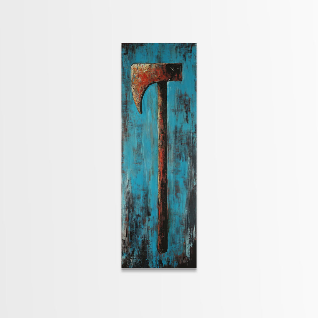 Rustic Axe on Blue Canvas Print wabi sabi wall art, moody art, rustic decor, vintage art, gift idea him, farmhouse art, geometric art