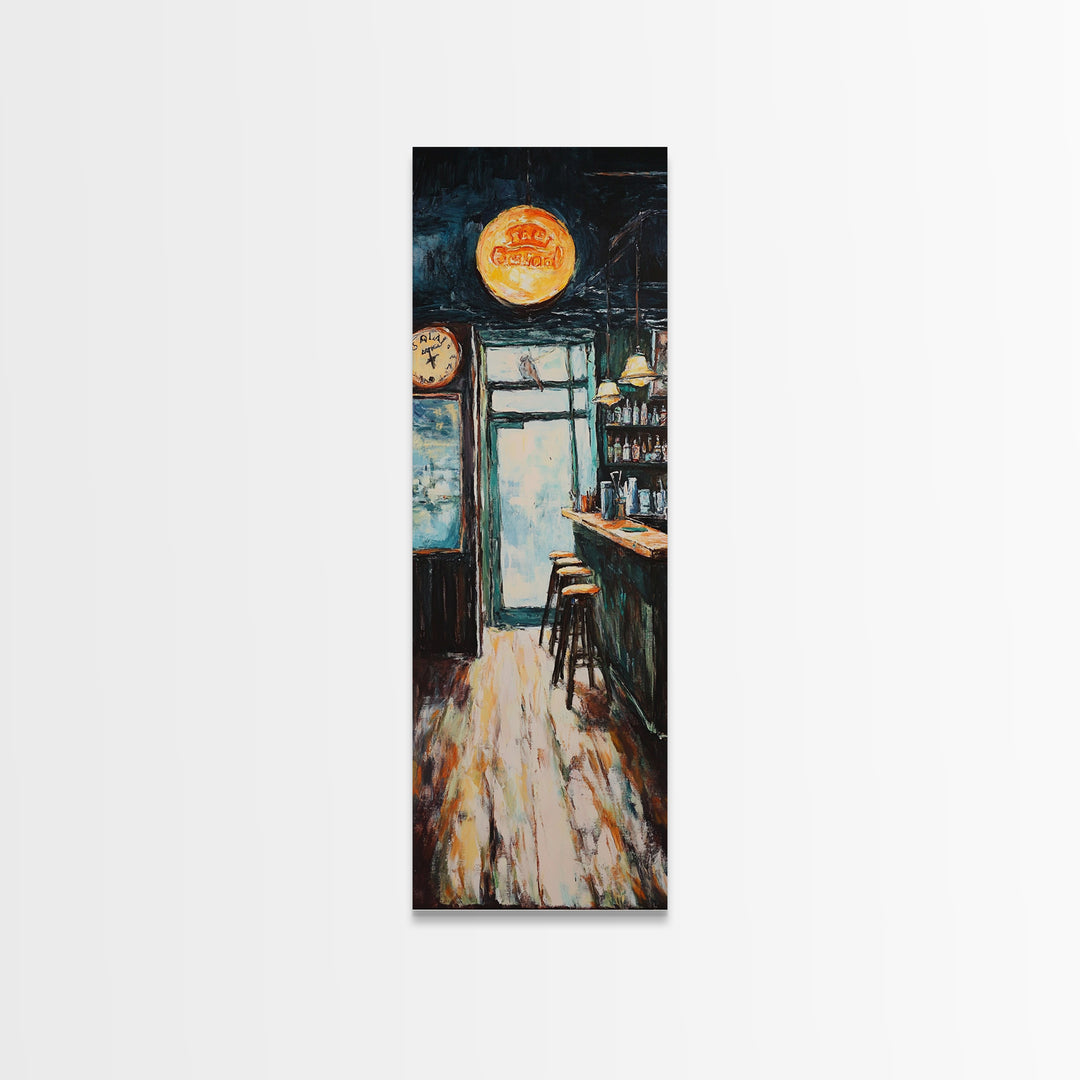 Rustic Bar Scene Framed Canvas Print, Espresso Martini Wall Art, Moody Art, Long Narrow Wall Art, Rustic Decor, Above Sofa Art, Gift Idea