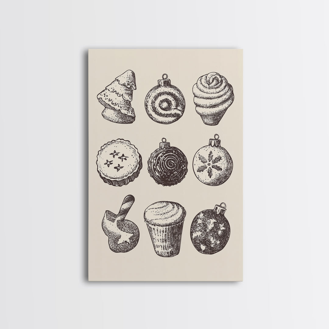 Rustic Boho Christmas Cookies Canvas Print - Framed Canvas - Minimalist Christmas Art - Boho Christmas Art - Rustic Christmas Art