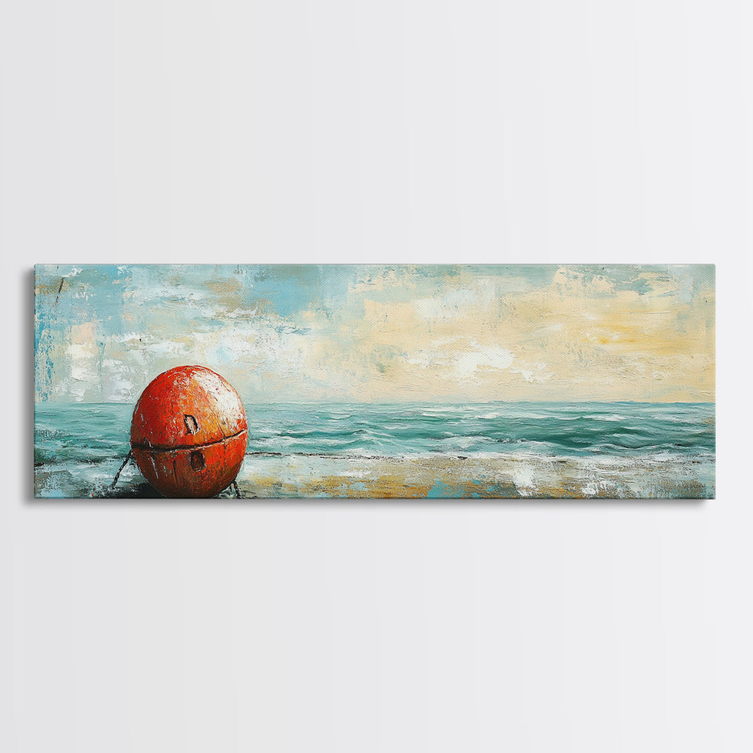 Rustic Buoy Seascape Framed Canvas Print Coastal Wall Art Nautical Beach House Decor Vintage Maritime Painting Ocean Gift