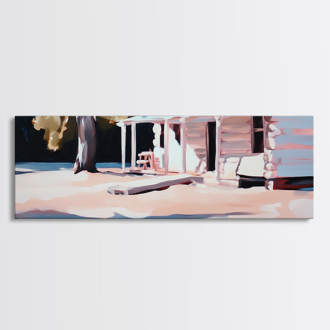 Rustic Cabin, Log House, Country Landscape, Canvas Print, Vintage Home Decor, Farmhouse Wall Art, Autumn Artwork, Cozy Living Room Art