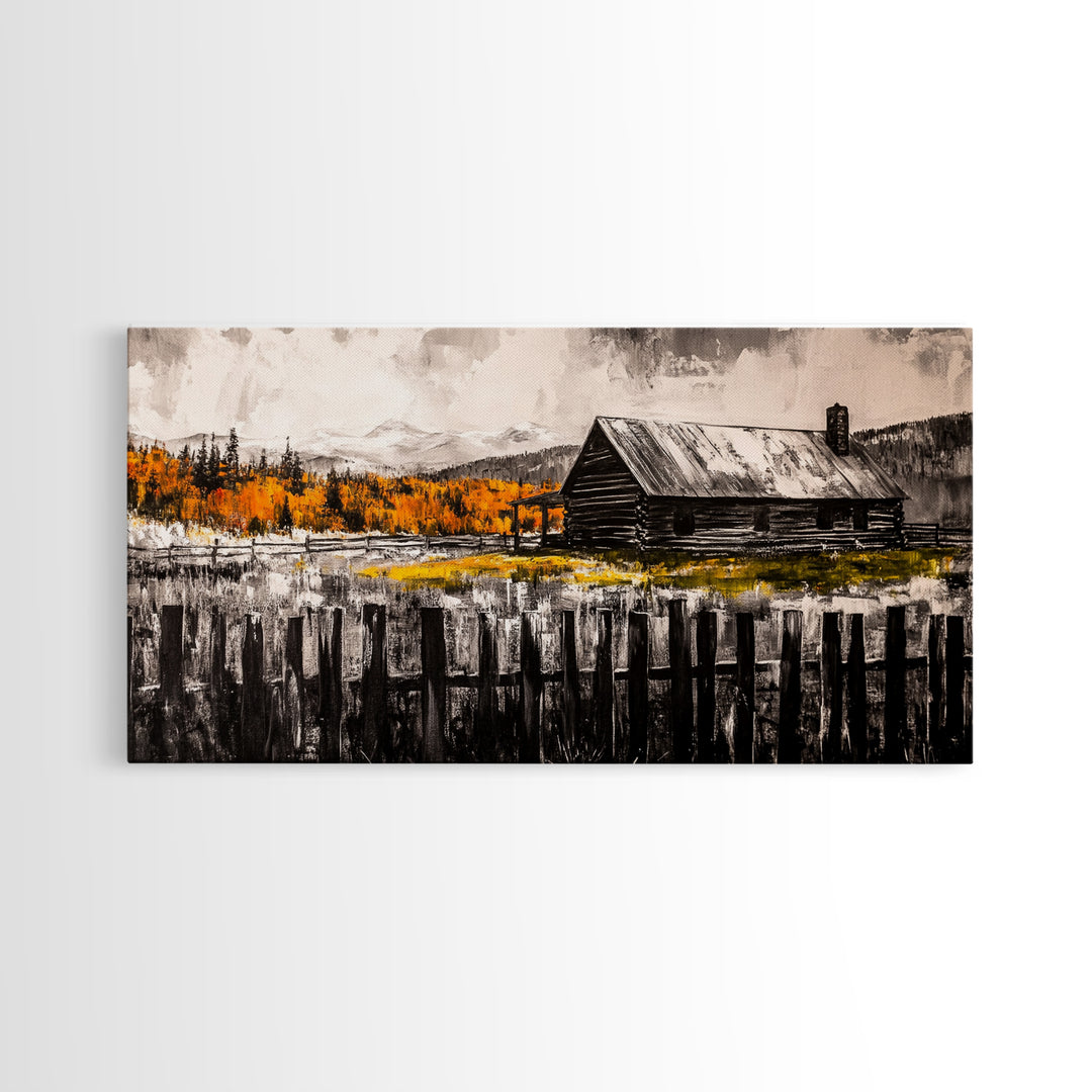 Rustic Cabin, Autumn Mountain Art, Western Wall Decor, Farmhouse Art, Fall Home Decor, Framed Canvas Print, Living Room Wall Art