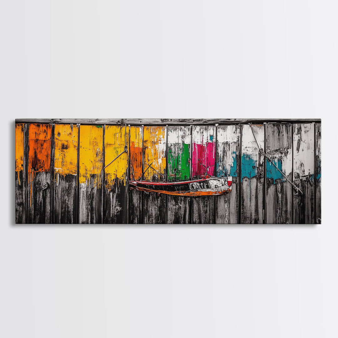 Rustic Boat, Vintage Wall Art, Weathered Wood Art, Coastal Nautical Decor, Framed Canvas Print, Living Room Art, Beach House Wall Art, Rustic Art