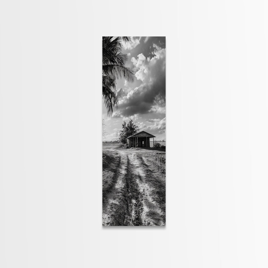 Rustic Cabin, Country Path, Prairie Landscape, Black and White Photo, Framed Canvas Print, Farmhouse Wall Art, Autumn Decor, Nature Style