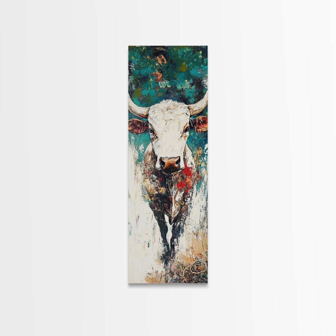 Rustic Bull Art Framed Canvas Print Southwest Western Wall Art, Farmhouse Art, Vintage Horse Art, Rustic Decor, Extra Wide Wall Art