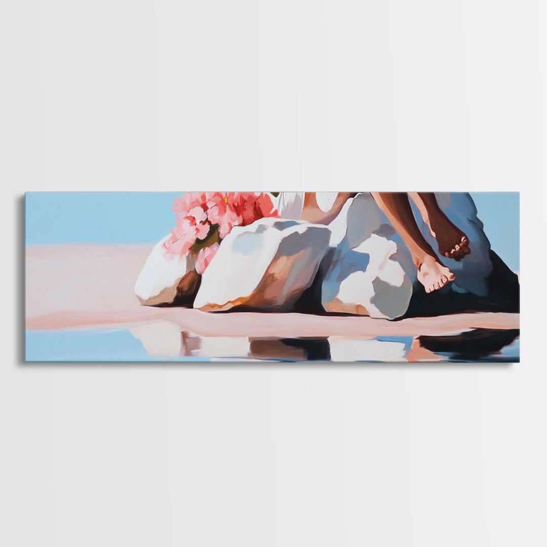 Beach Blossom Scene, Floral Coastal Art, Pastel Summer Vibes, Nature Wall Decor, Soft Aesthetic, Canvas Print, Bedroom Wall Art