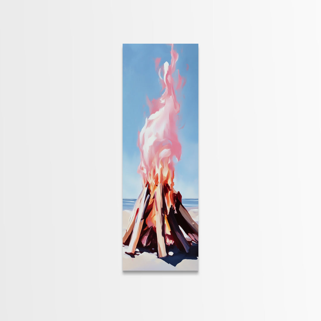 Beach Bonfire, Cozy Fire, Coastal Scene, Canvas Print, Warm Tones, Nautical Decor, Living Room Wall Art, Relaxing Nature Aesthetic