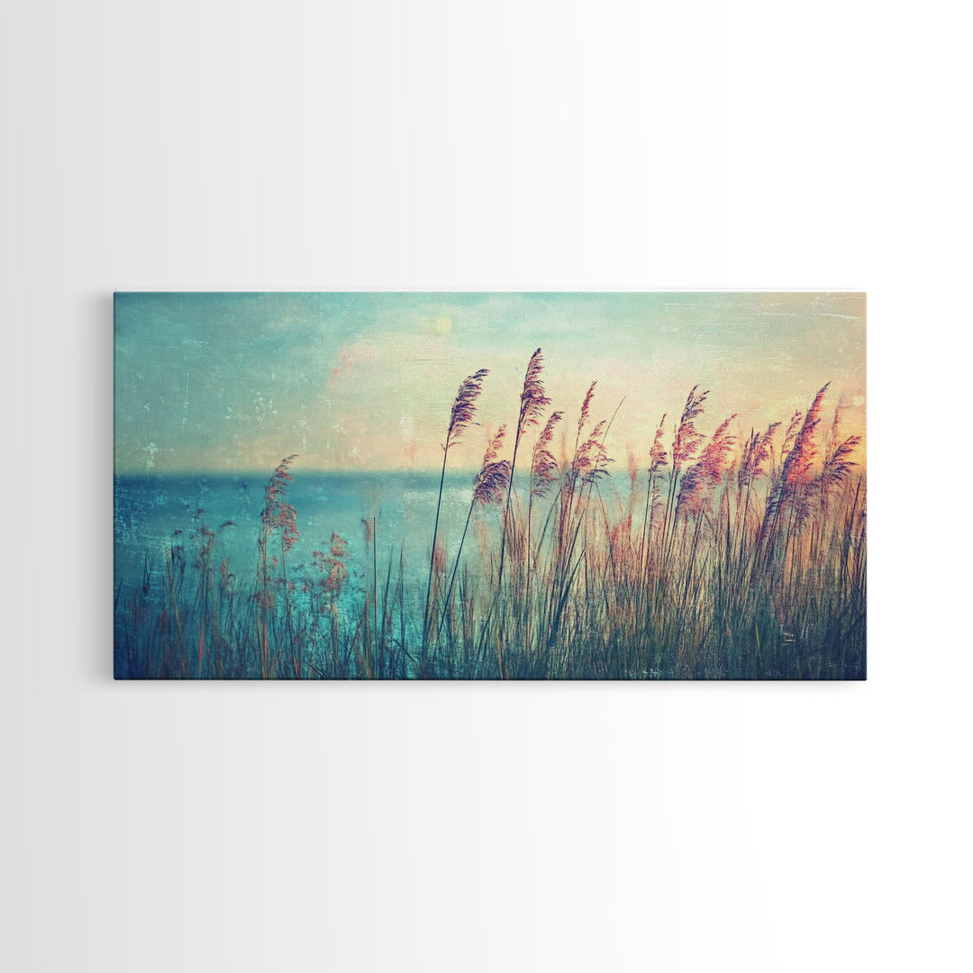 Beach Grass, coastal wall art, farmhouse decor, nautical painting, seascape painting, framed canvas print, panoramic art