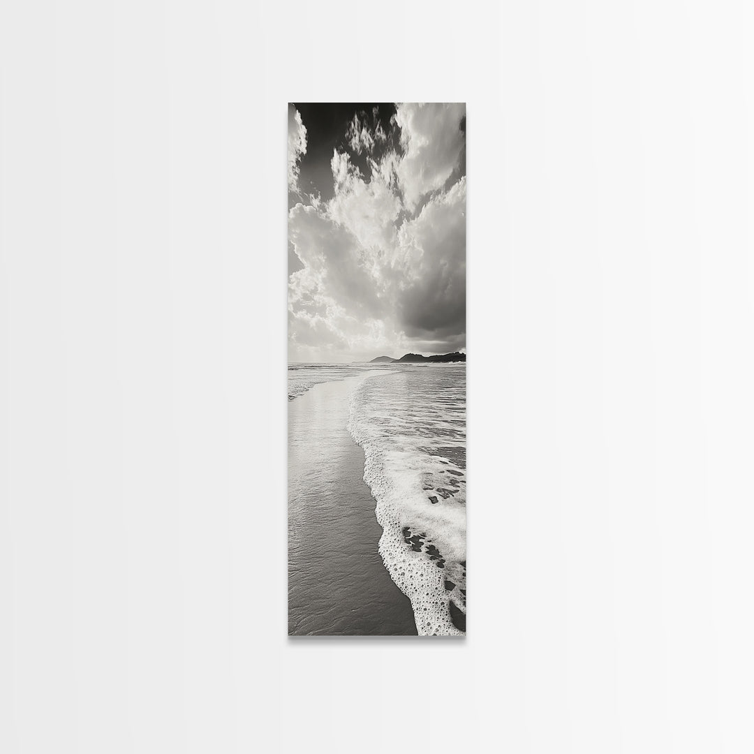 Beach Horizon, Ocean Calm, Foamy Shore, Black White Coastal Art, Canvas Print, Bathroom Decor, Peaceful Coastal Minimalist Style