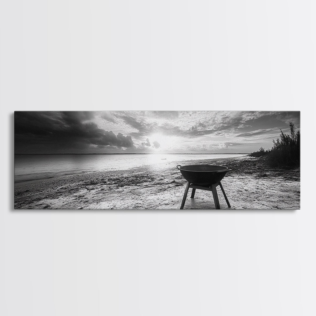 Beach Grill, Sunset Shore, Cloudy Horizon, Canvas Print, Coastal Minimalist Decor, Kitchen Wall Art, Autumn Beach House Accent