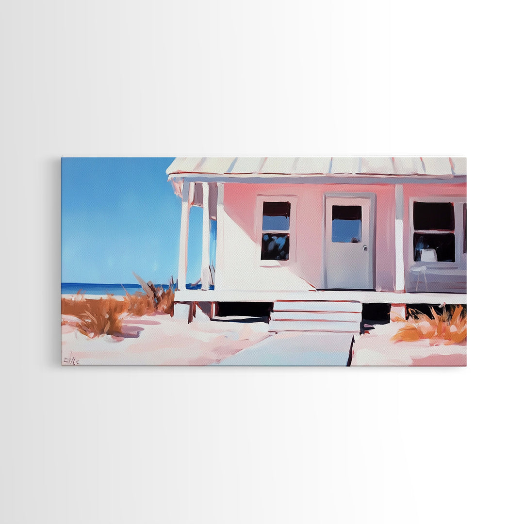Beach House, Oceanfront Cottage, Coastal Living Art, Framed Canvas Print, Nautical Wall Decor, Seaside Home, Summer Aesthetic