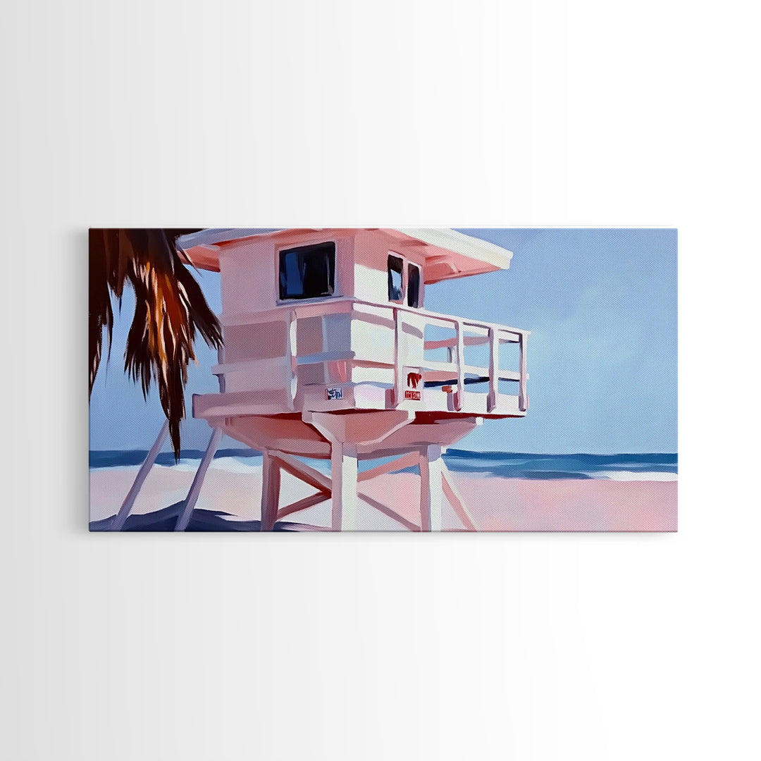 Beach Lifeguard Tower, Coastal Wall Art, Minimalist Beach Print, Boho Coastal Decor, Summer Beach House, Living Room Canvas Print
