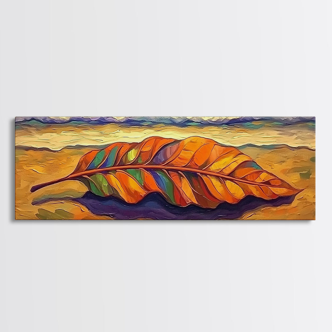 Beach Leaf, Autumn Shore, Colorful Nature, Seaside Calm, Canvas Print, Fall wall art, rustic decor, coastal wall piece
