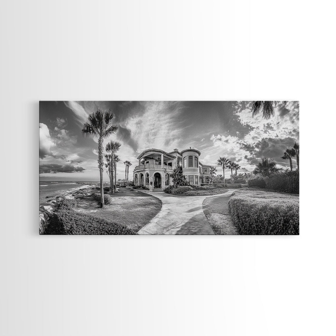 Beach Mansion Wall Art, Tropical Coastal House, Luxury Villa Print, Palm Tree Canvas Print, Living Room Decor, Modern Home Wall Art