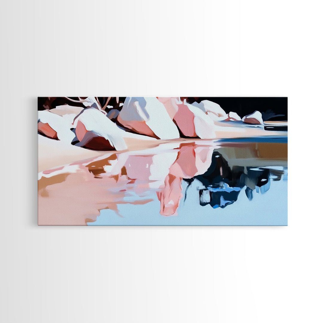 Beach Reflections, Rock Formations, Seaside Art, Canvas Print, Coastal Wall Decor, Ocean Painting, Living Room Art, Minimalist Beach Art