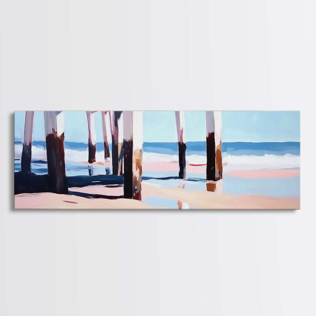 Beach Pier Painting, Coastal Ocean Scene, Nautical Seascape Art, Minimalist Modern Aesthetic, Relaxing Summer Wall Decor, Canvas Print