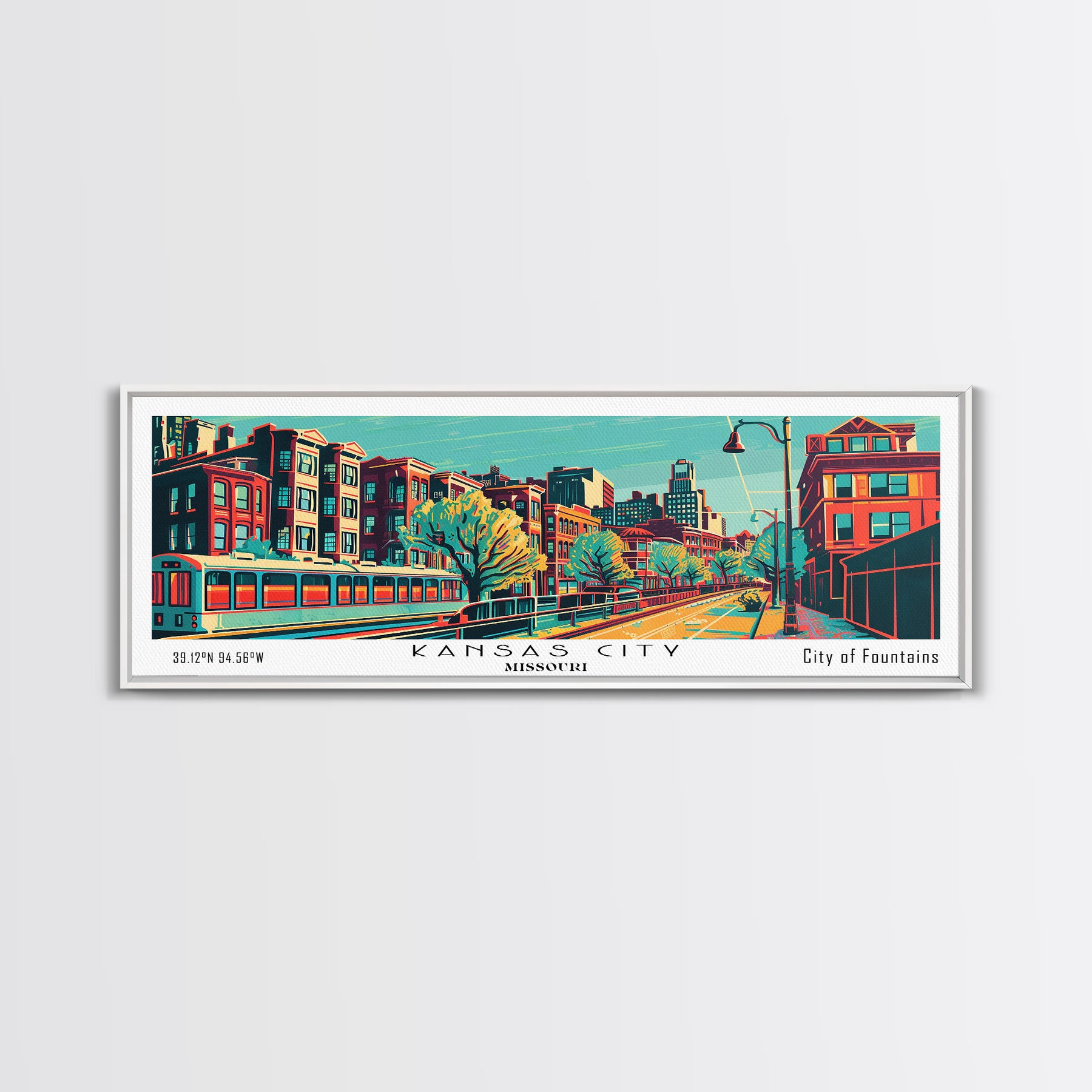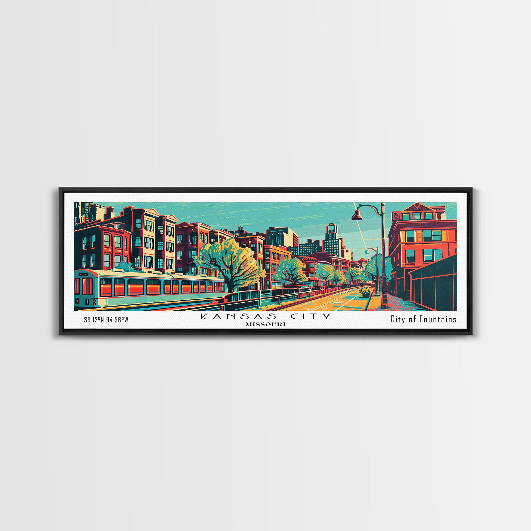 Kansas City Missouri Panoramic Travel Poster Framed Canvas Print, Mid Century Modern Art, Pop Art Style, Wall Art, Wall Decor, Home Decor, Retro Style Art