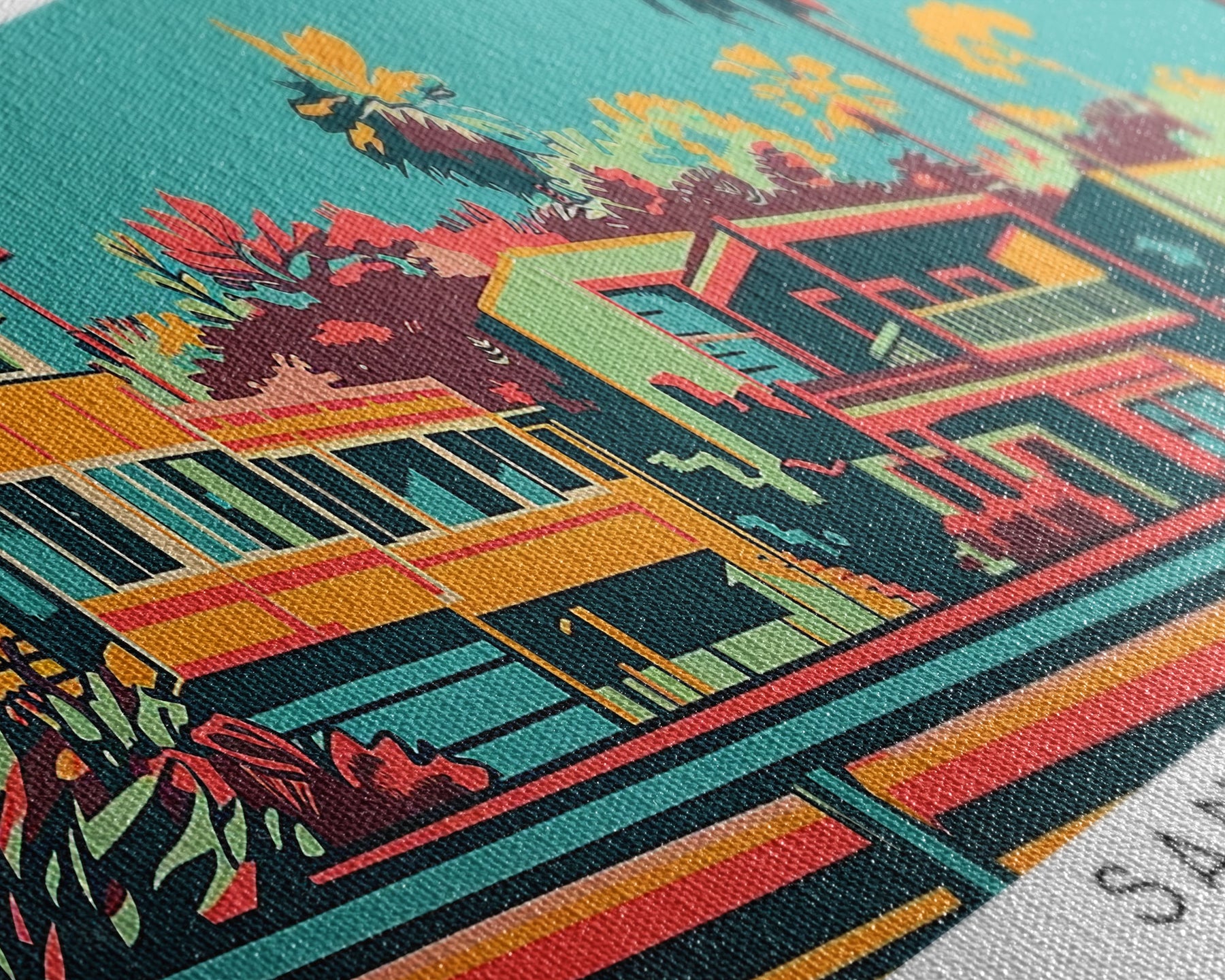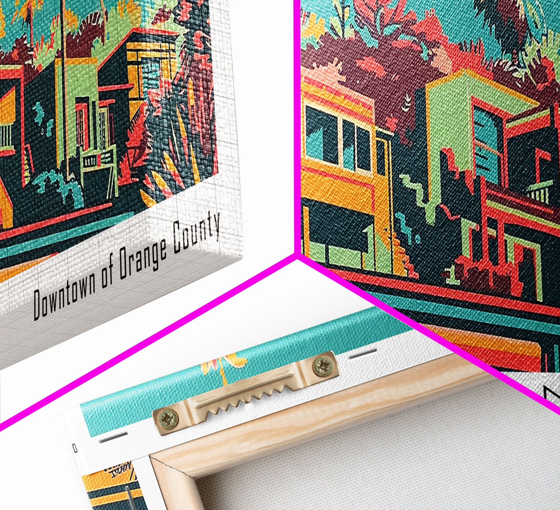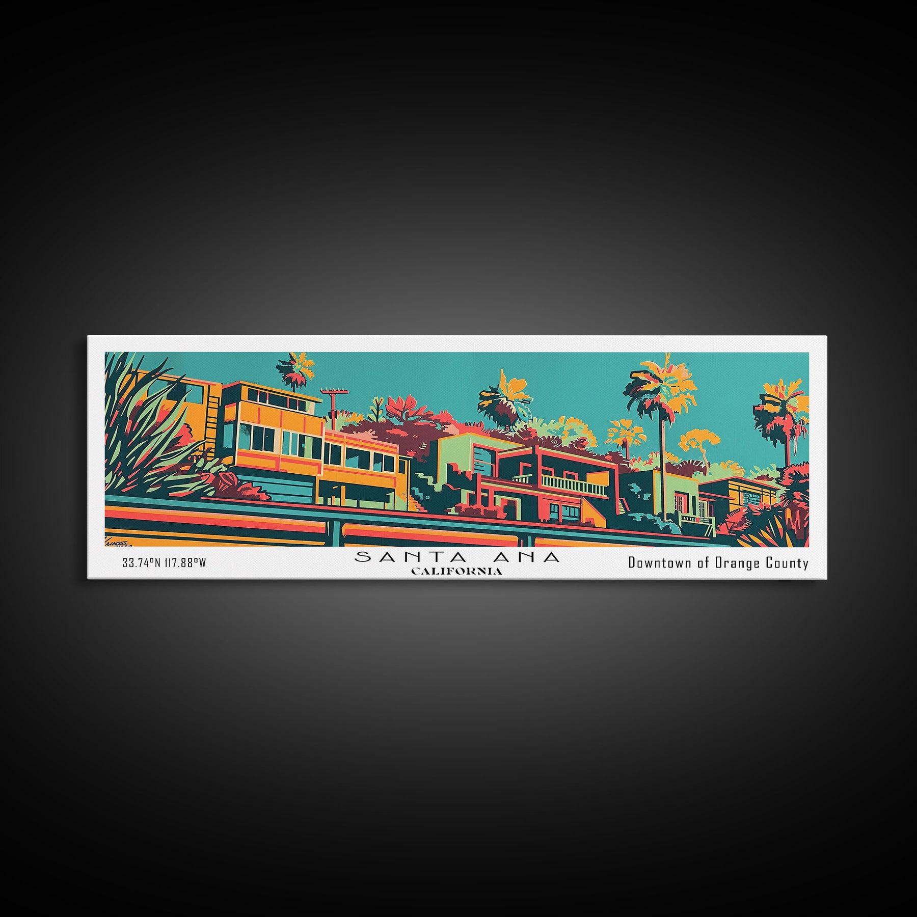 Santa Ana California Panoramic Wall Art Framed Canvas Print, Travel Poster, Mid Century Modern Art, Pop Art Style, Wall Decor, Office Wall Art