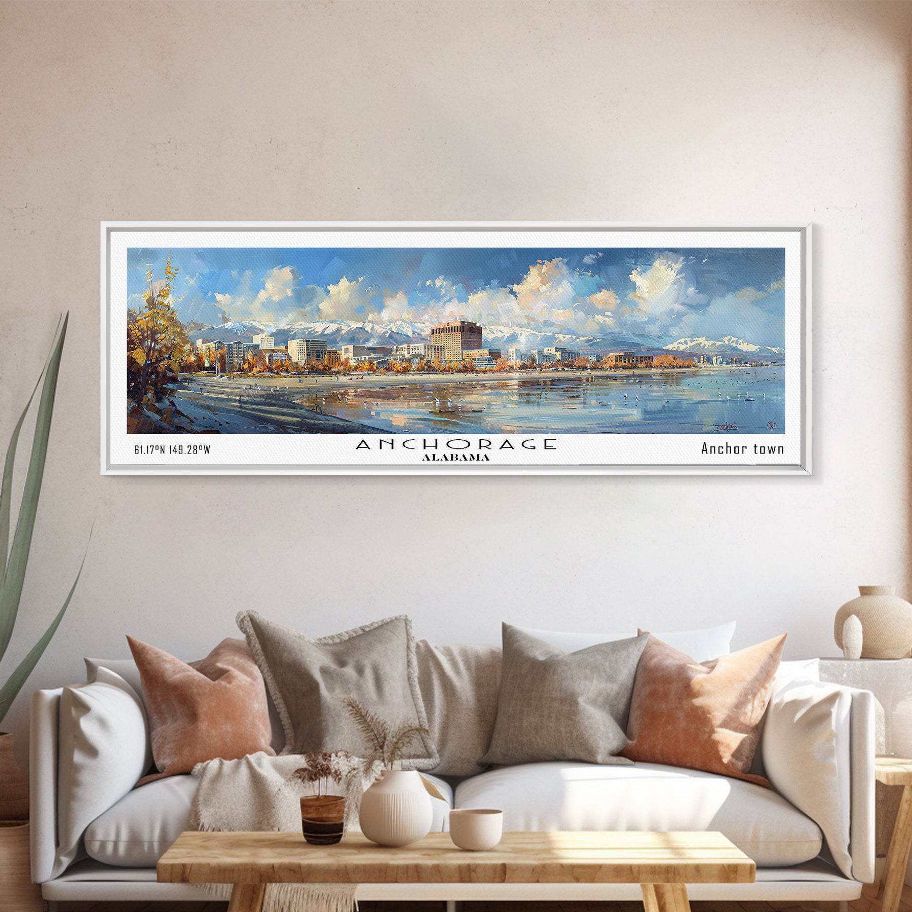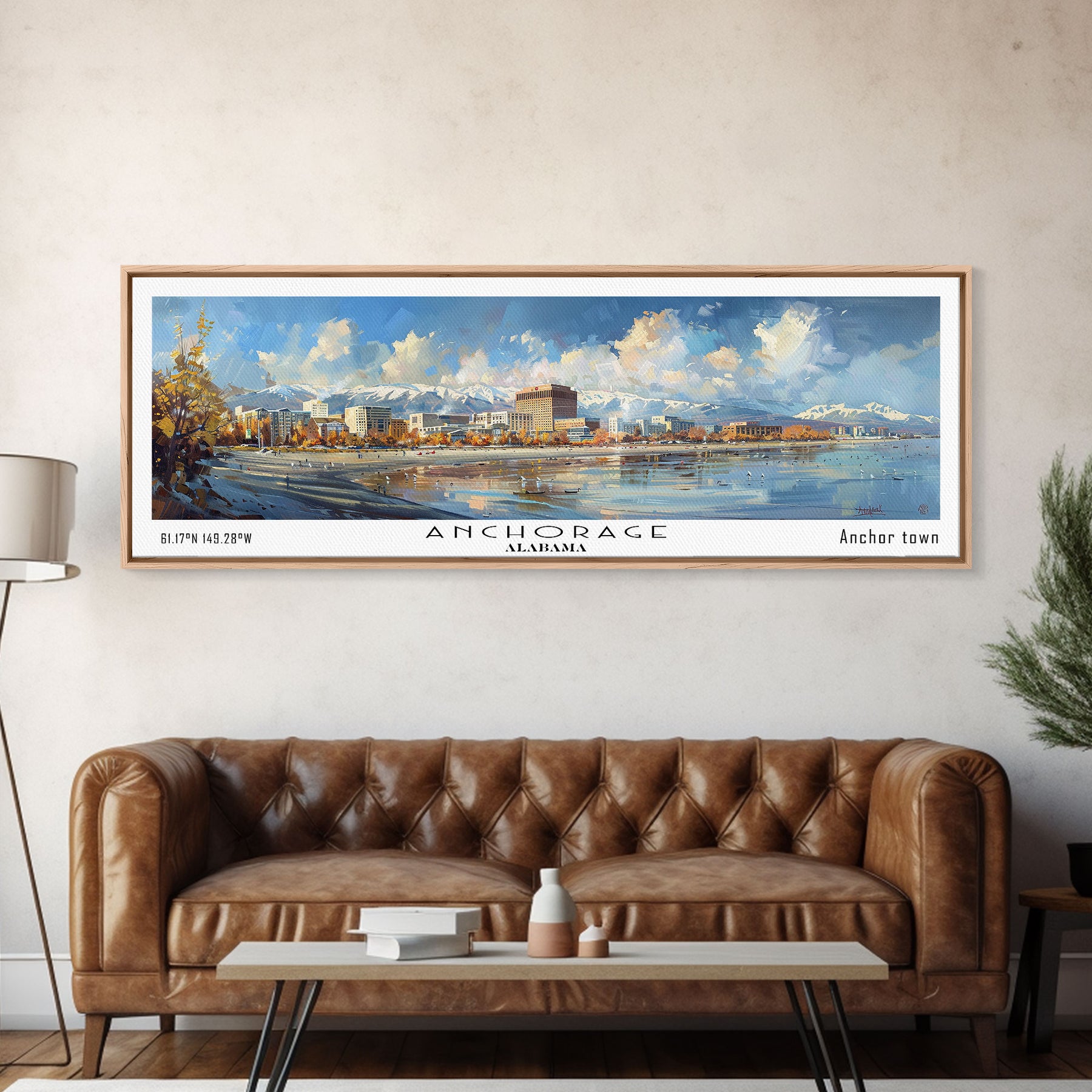 Anchorage Alaska Panoramic Painting, Watercolor Framed Canvas Print, Scenic City Art, Travel Poster, Wall Decor, Living Room Art, Office Wall Art