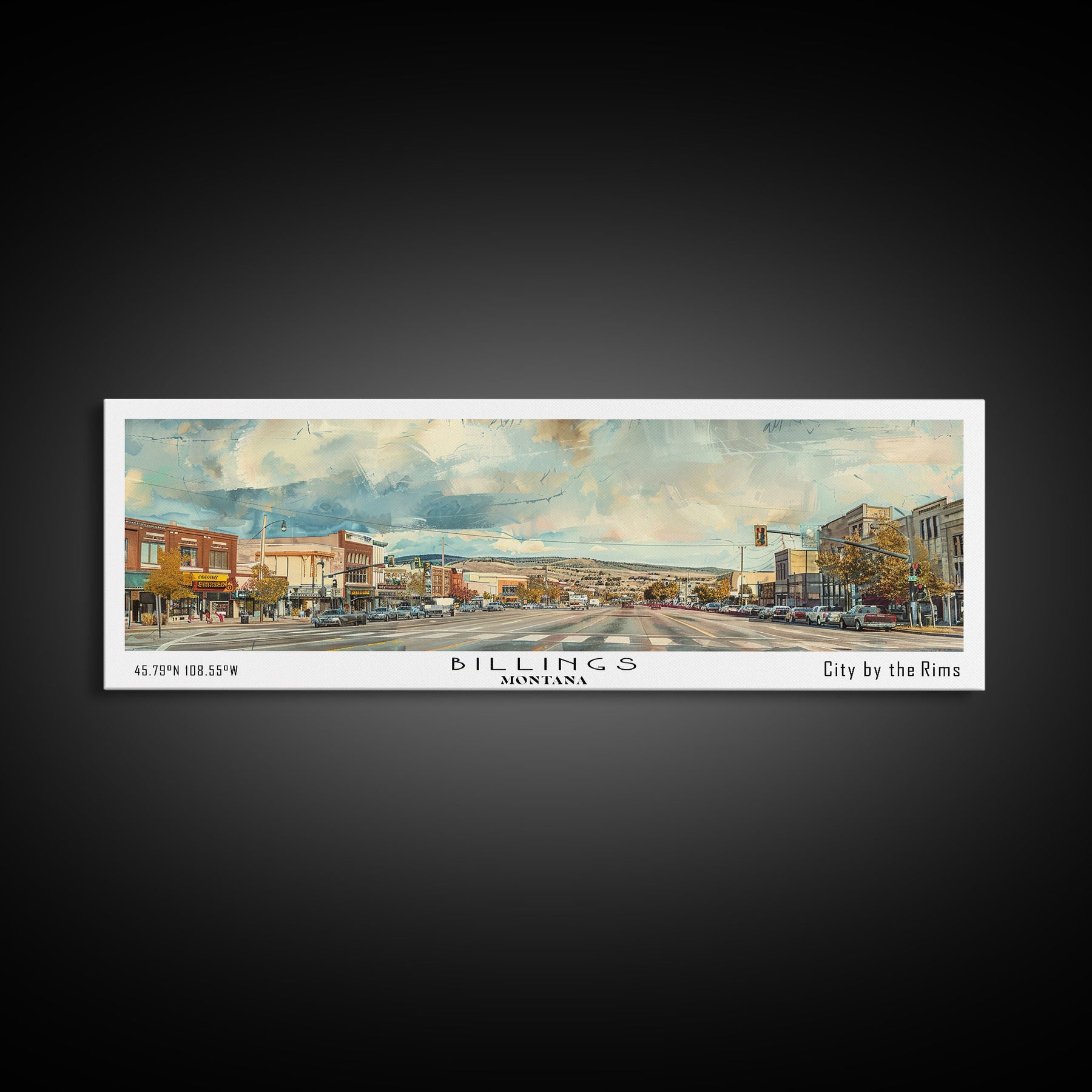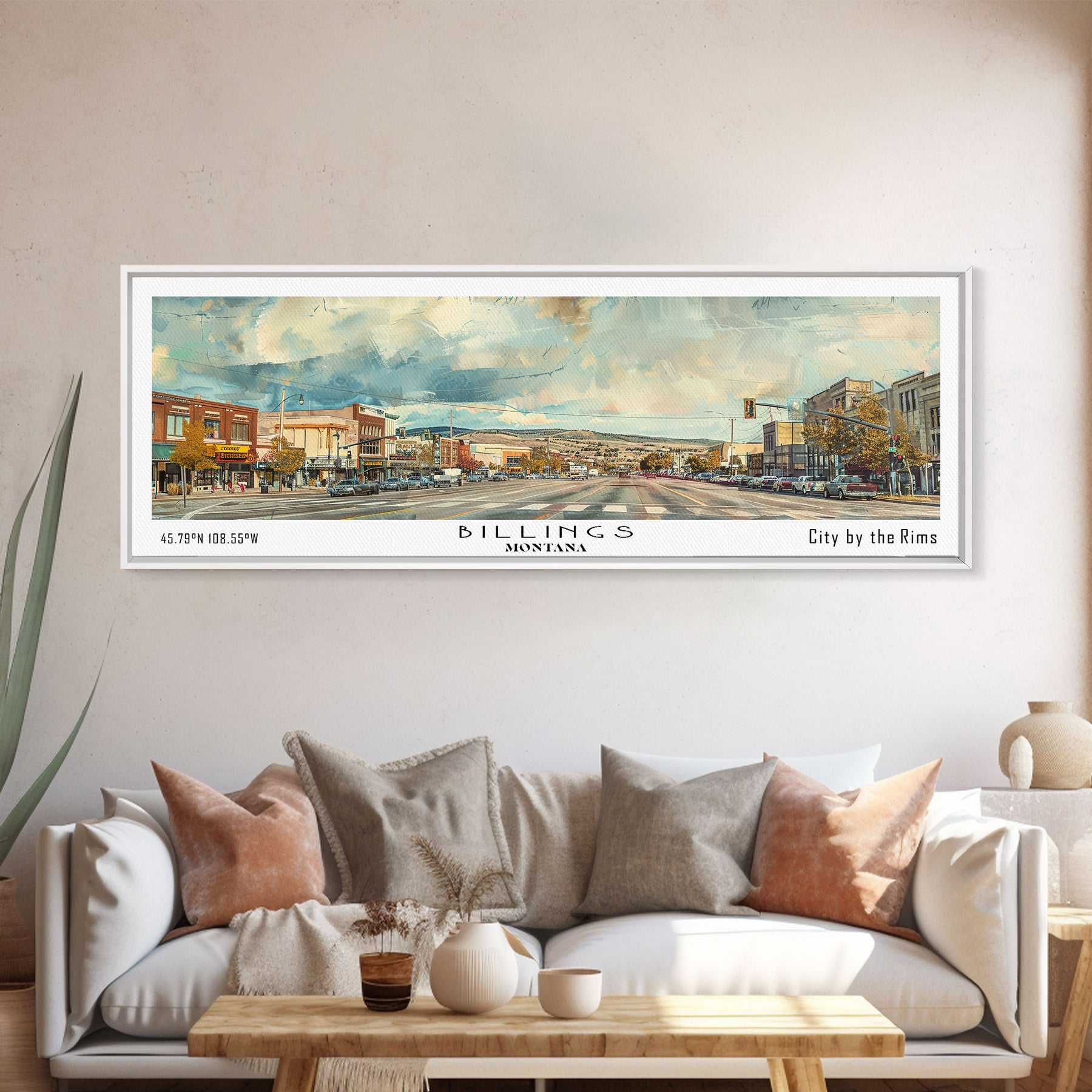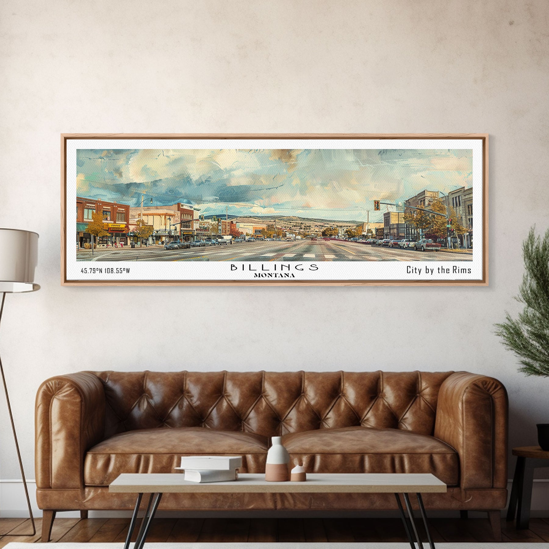 Billings Montana Panoramic Painting, Watercolor Framed Canvas Print, Scenic City Art, Travel Poster, Home Decor, Wall Hanging, Living Room Art