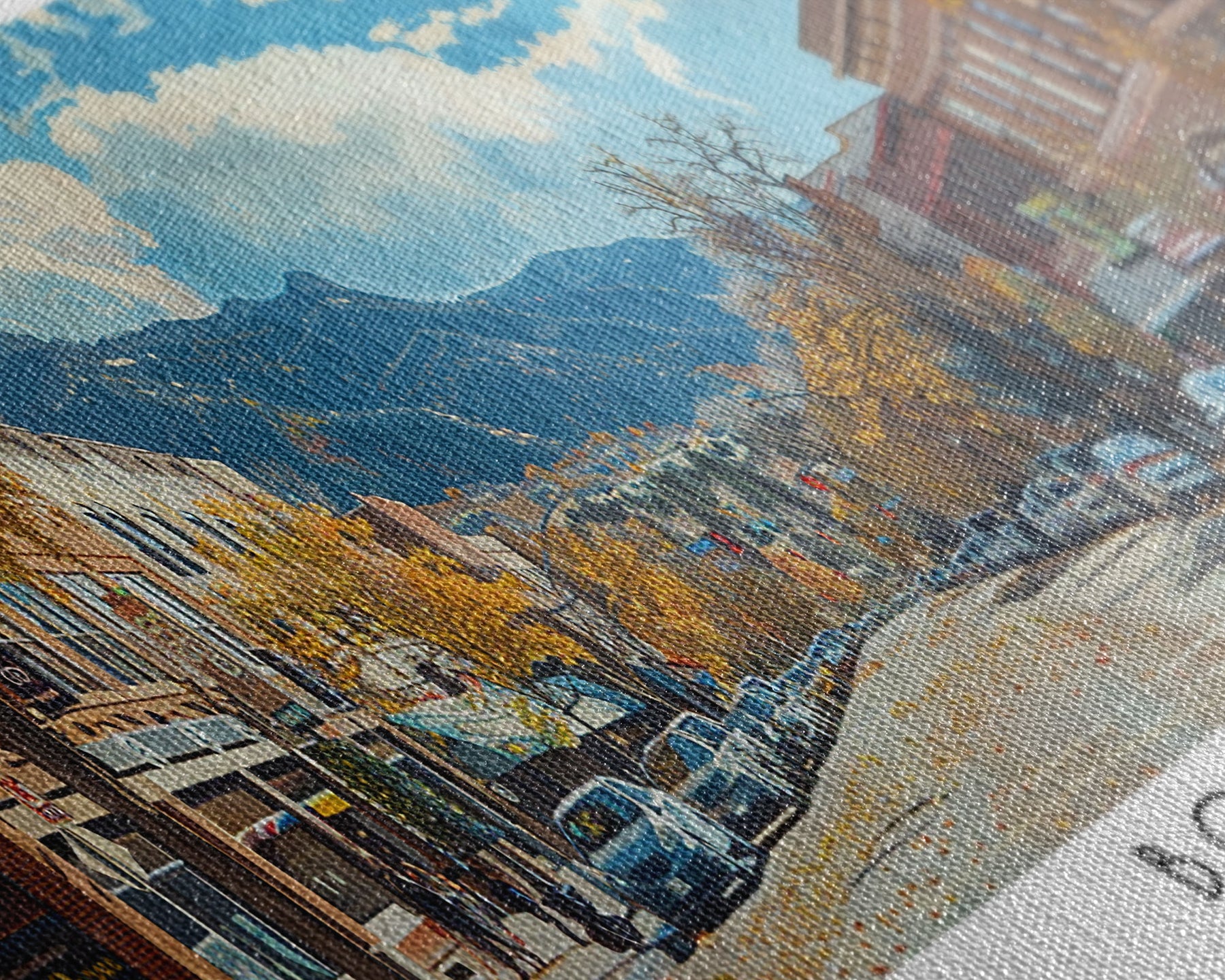 Most of our canvases are made in the USA, with the exception of canvases ordered with the light oak unstained frames, and any large canvases (24x48, 30x60, 16x48 and 20x60) ordered WITH a frame. These are temporarily made in and shipped from Europe, while we try to find a more consistent supplier in the USA.