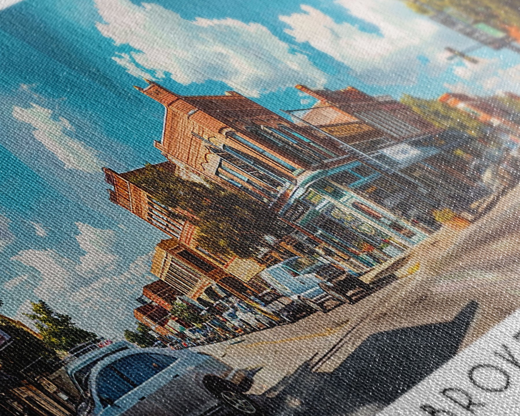 Most of our canvases are made in the USA, with the exception of canvases ordered with the light oak unstained frames, and any large canvases (24x48, 30x60, 16x48 and 20x60) ordered WITH a frame. These are temporarily made in and shipped from Europe, while we try to find a more consistent supplier in the USA.