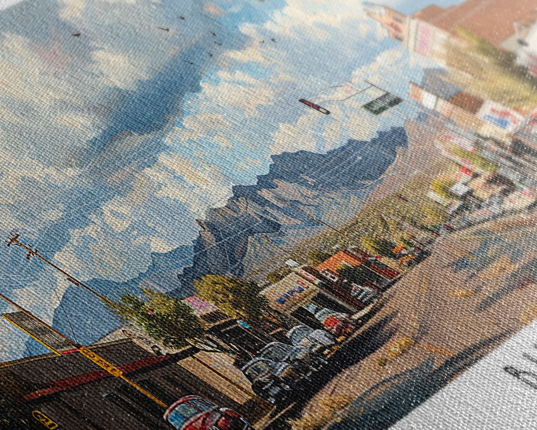 Most of our canvases are made in the USA, with the exception of canvases ordered with the light oak unstained frames, and any large canvases (24x48, 30x60, 16x48 and 20x60) ordered WITH a frame. These are temporarily made in and shipped from Europe, while we try to find a more consistent supplier in the USA.