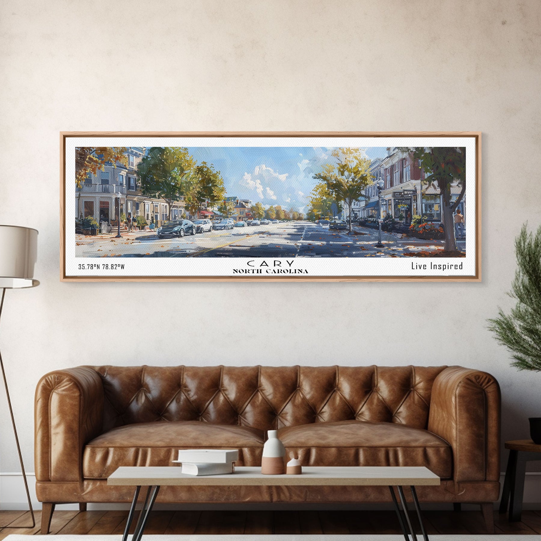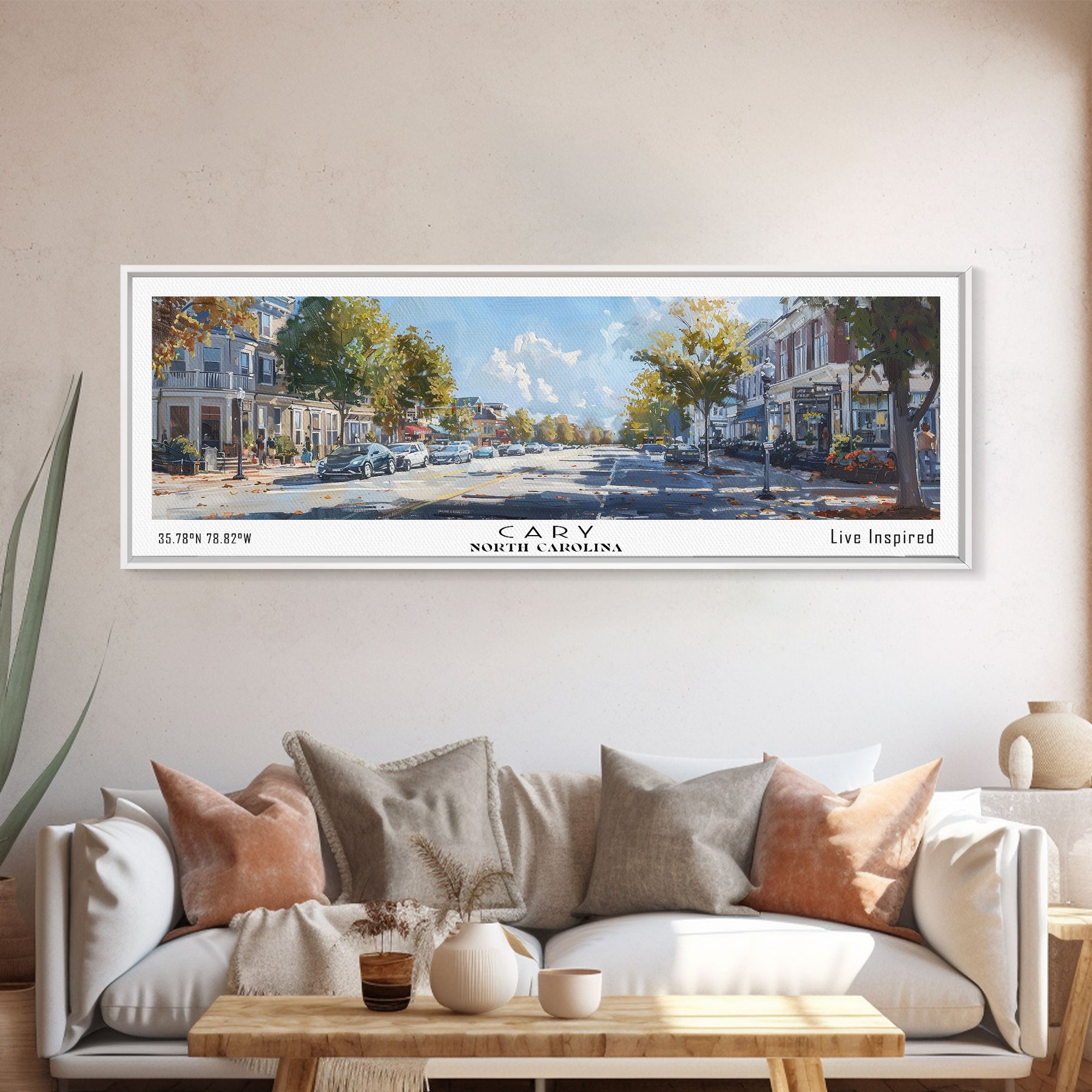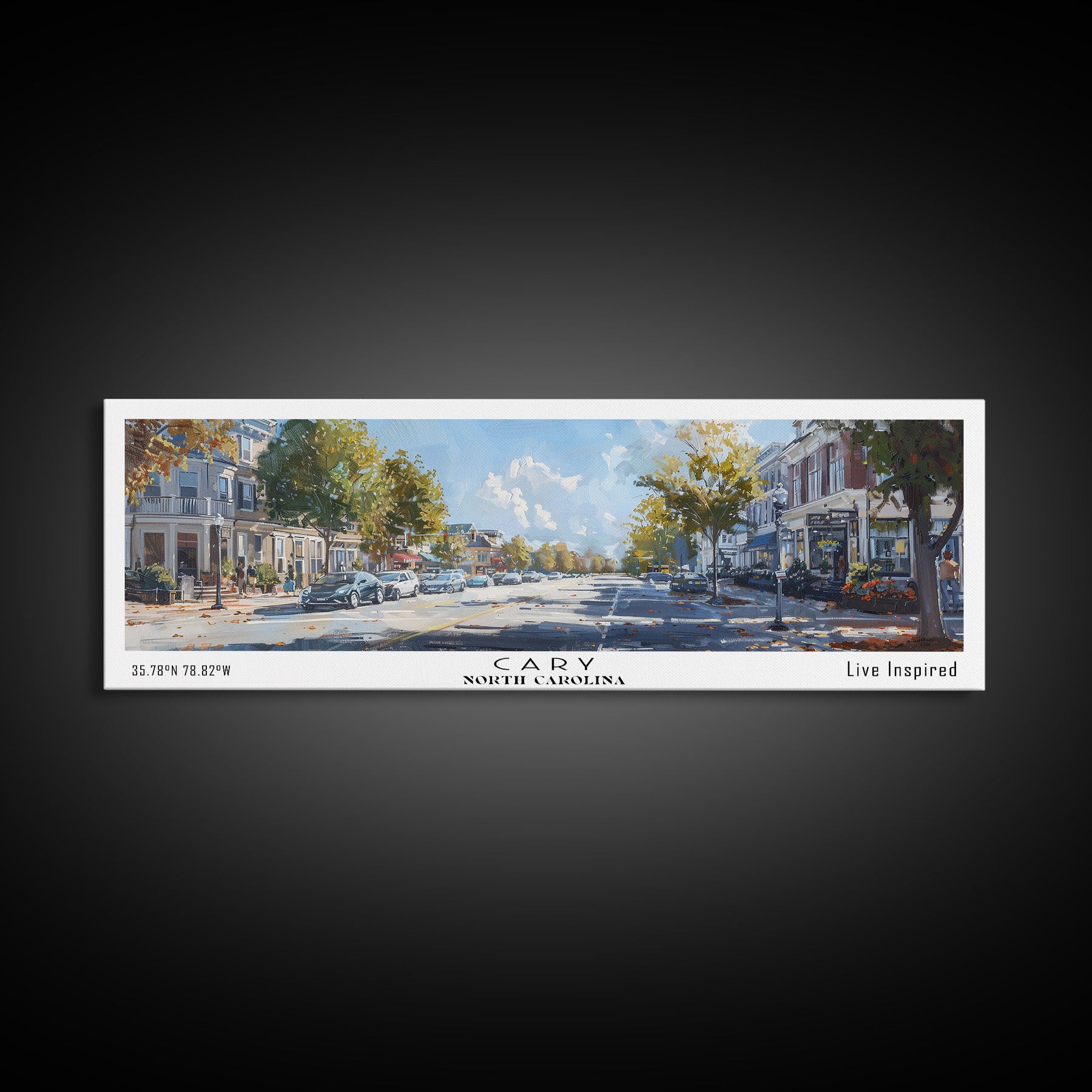 Cary North Carolina Panoramic Watercolor Painting Framed Canvas Print, Travel Poster Art, Home Decor, Picturesque North Carolina Landscape, Living Room Wall Art, Office Decoration, North Carolina Gift