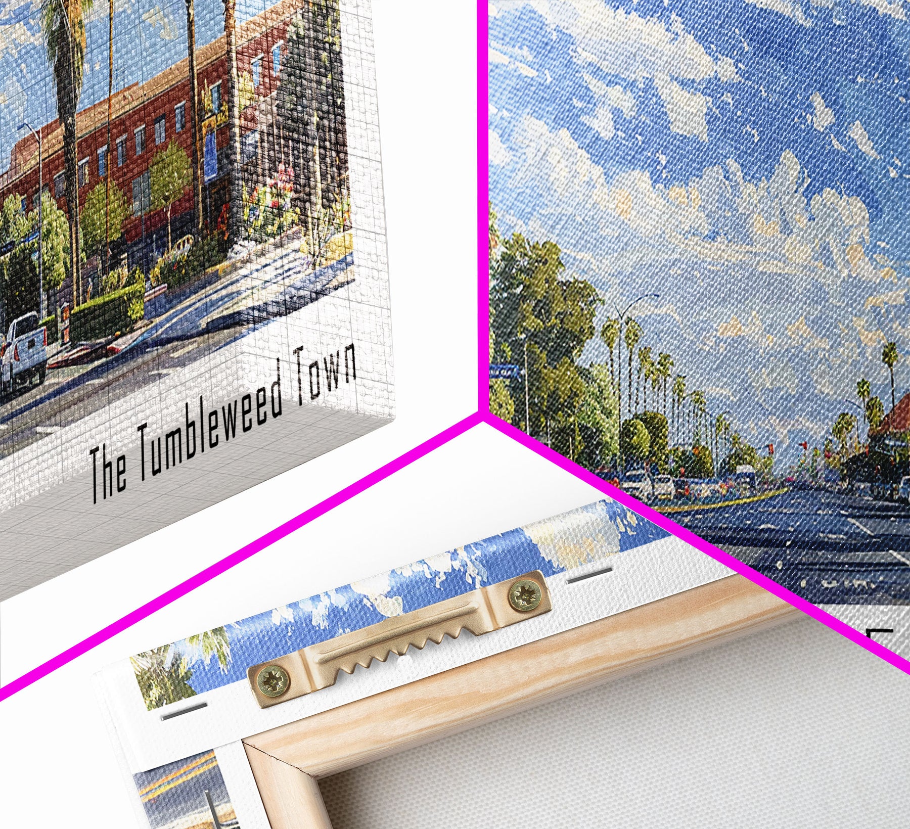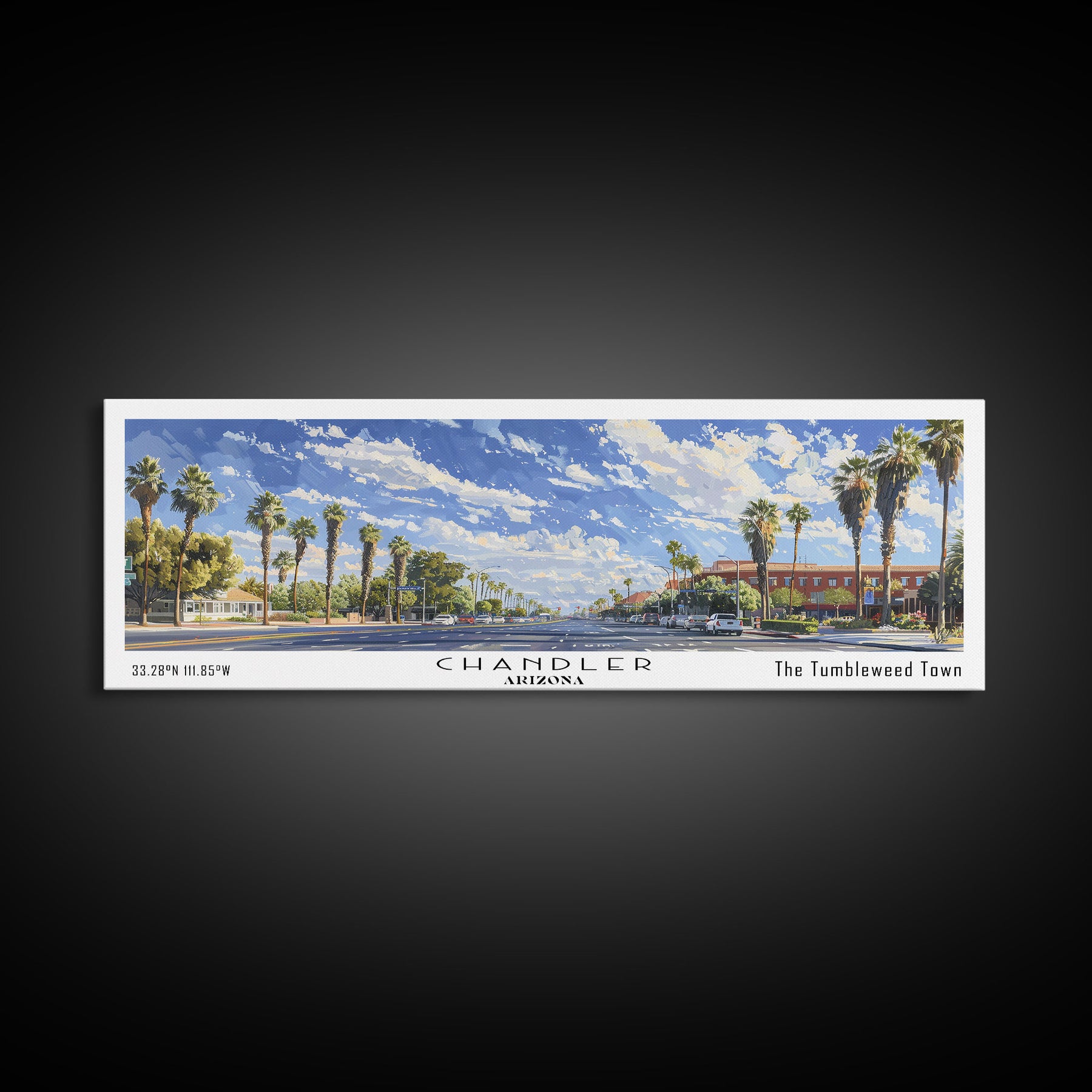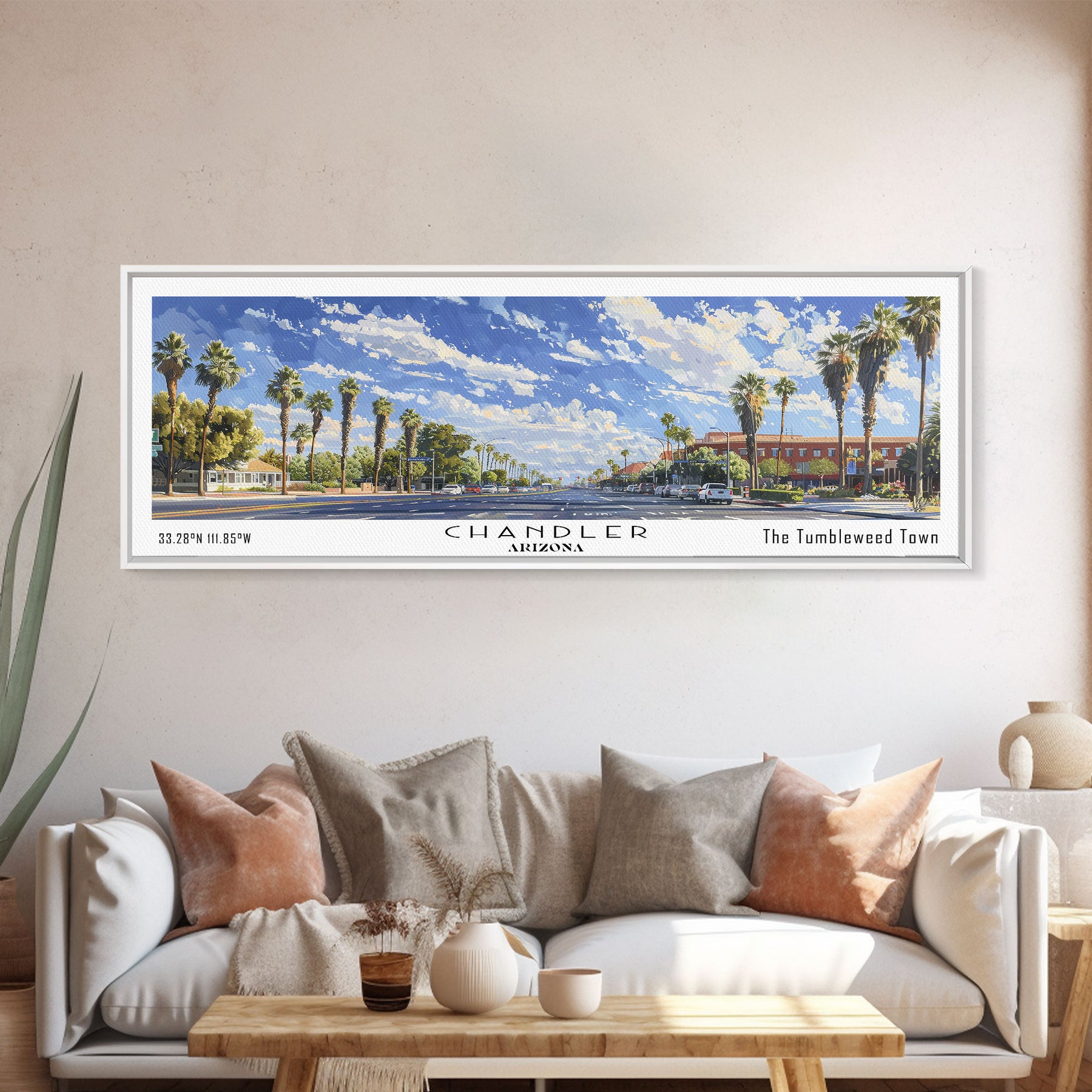 Chandler Arizona Panoramic Watercolor Painting Framed Canvas Print, Travel Poster Art, Home Decor, Vibrant Arizona Cityscape, Living Room Wall Art, Office Decoration, Gift for Art Lovers