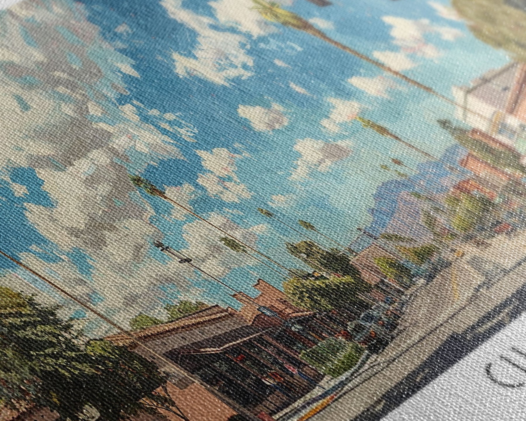 Most of our canvases are made in the USA, with the exception of canvases ordered with the light oak unstained frames, and any large canvases (24x48, 30x60, 16x48 and 20x60) ordered WITH a frame. These are temporarily made in and shipped from Europe, while we try to find a more consistent supplier in the USA.