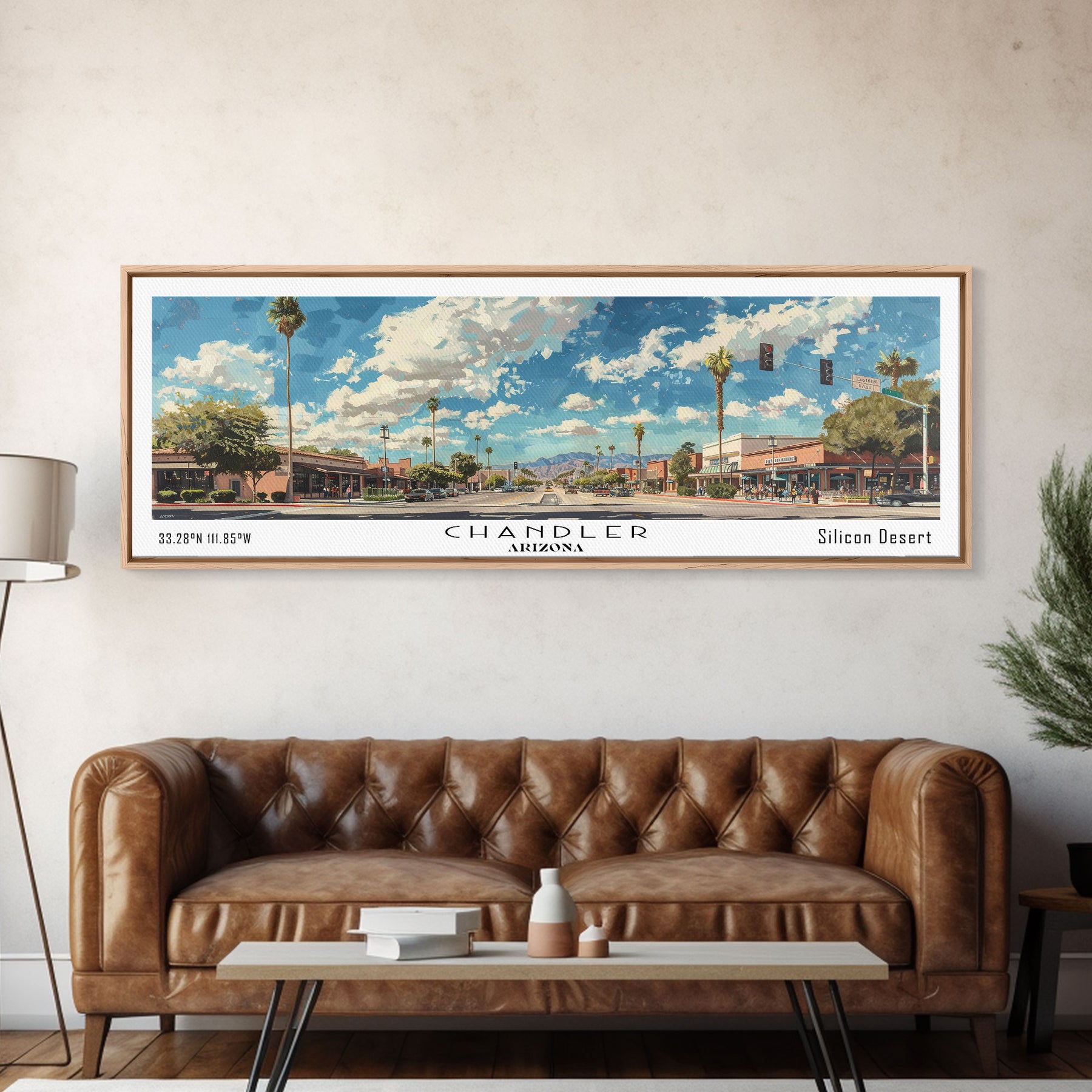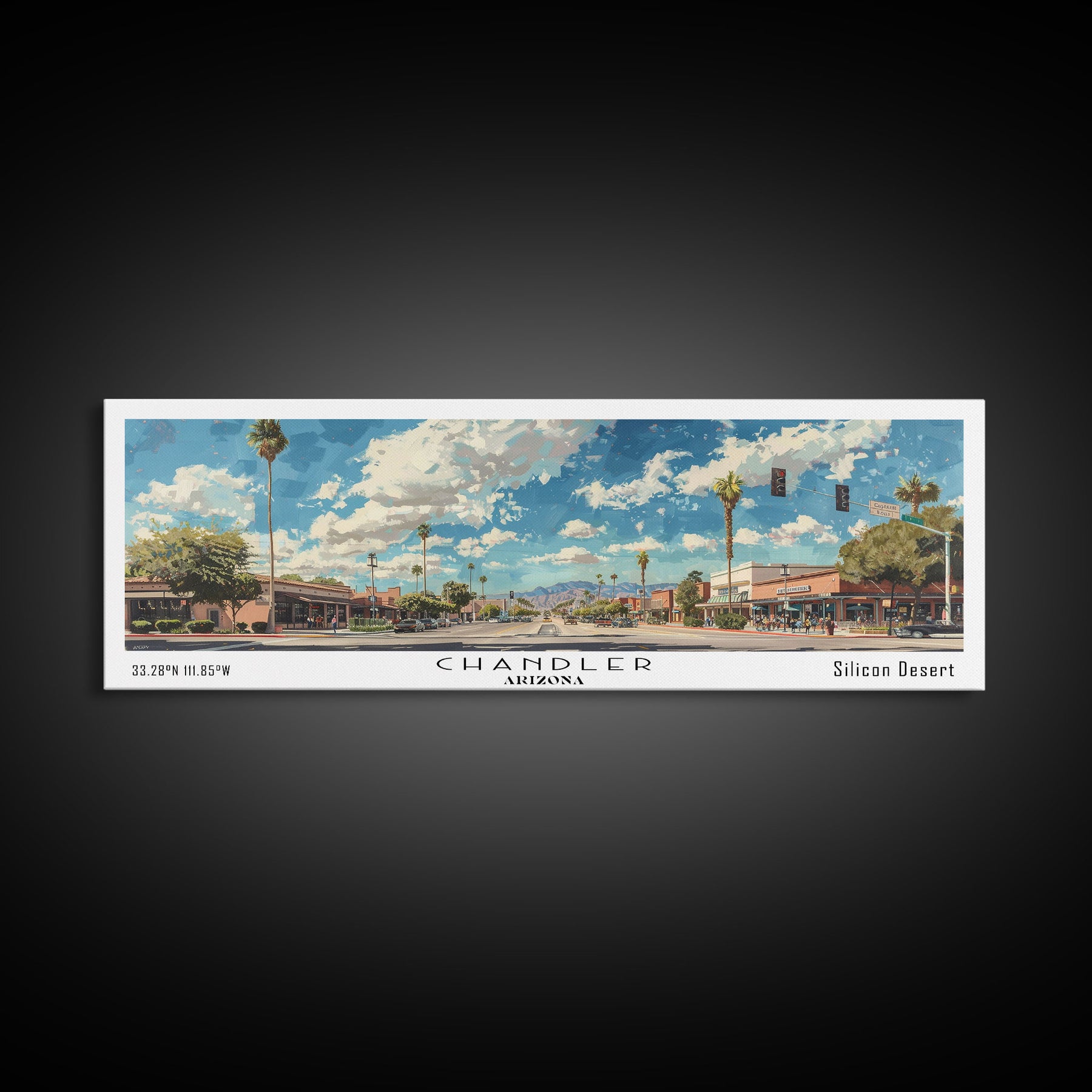 Chandler Arizona Panoramic Watercolor Painting Framed Canvas Print, Travel Poster Art, Home Decor, Desert Cityscape, Bedroom Wall Art, Office Decoration, Unique Travel Gift