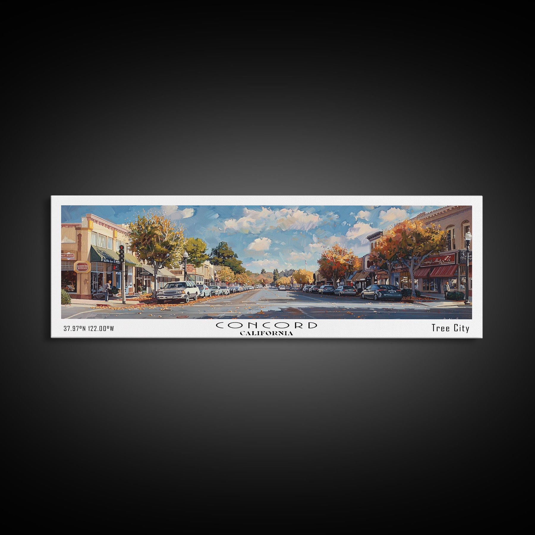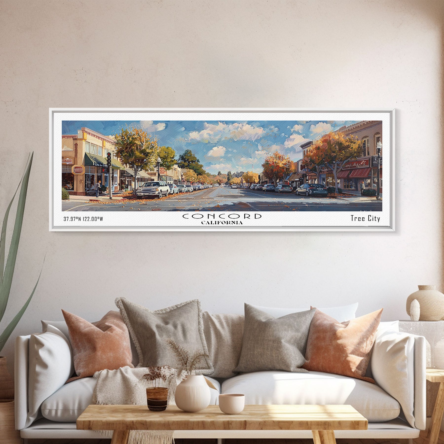 Concord California Panoramic Watercolor Painting Framed Canvas Print, Travel Poster Art, Picturesque Landscape, Living Room Decor, Wall Art, Office Decoration, Unique Travel Gift
