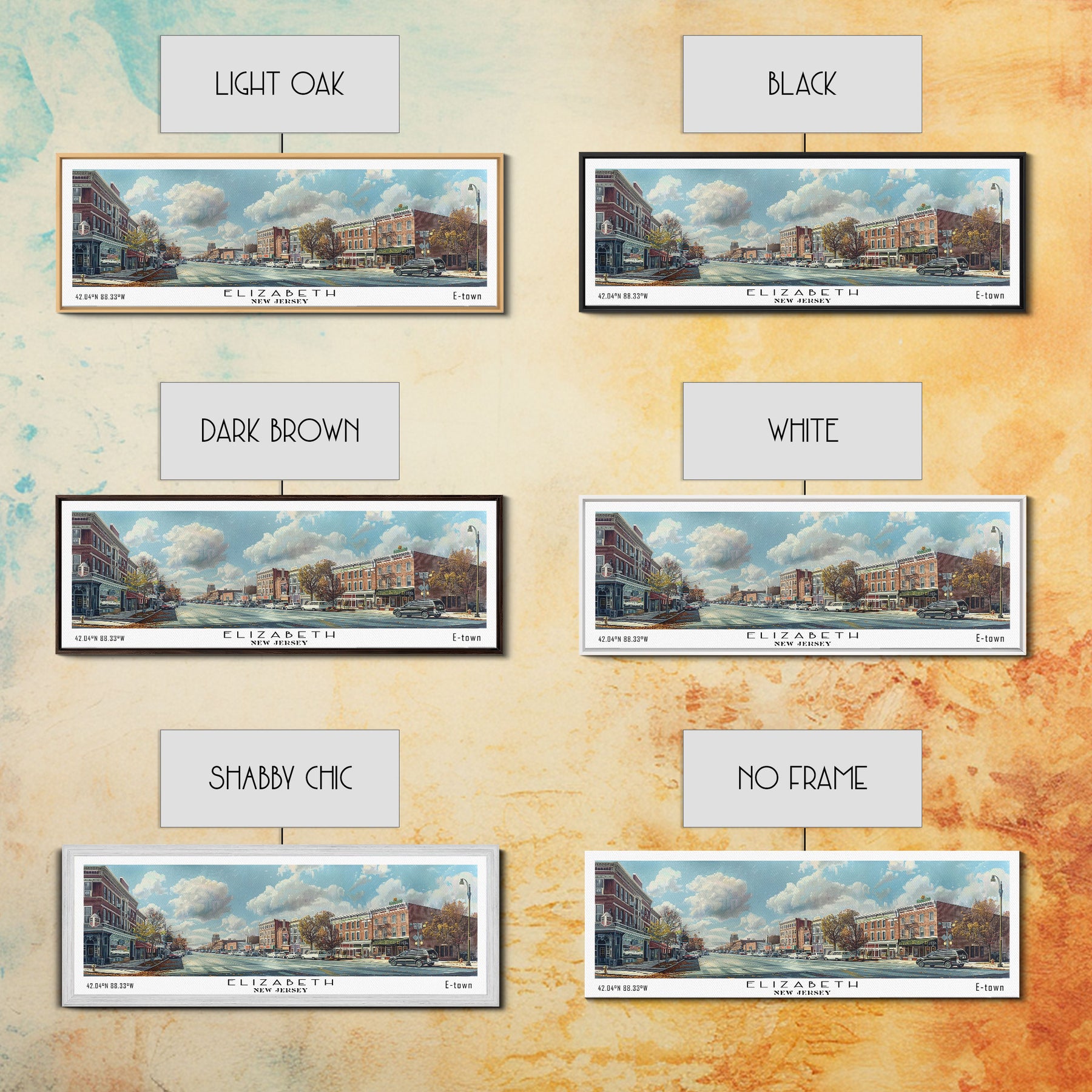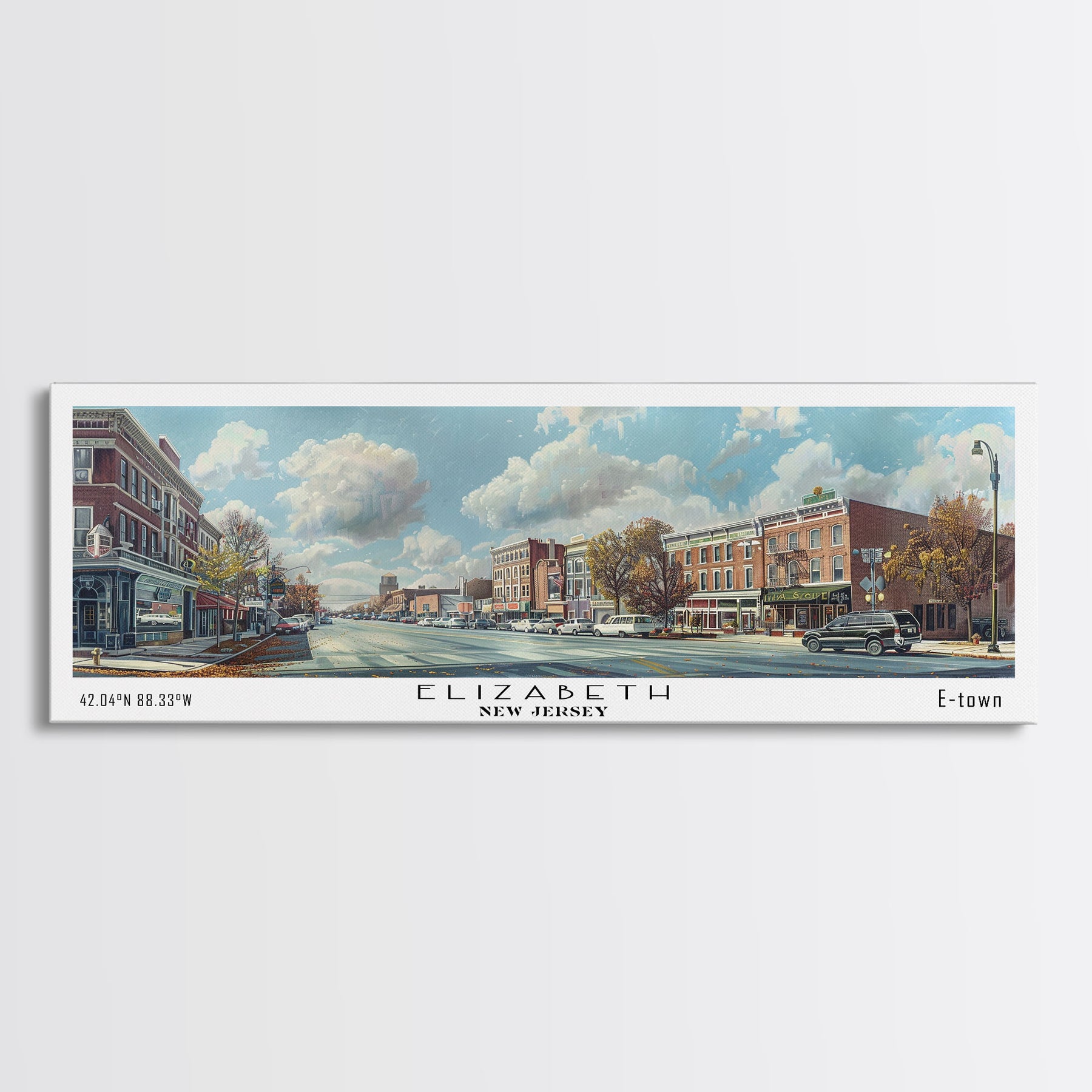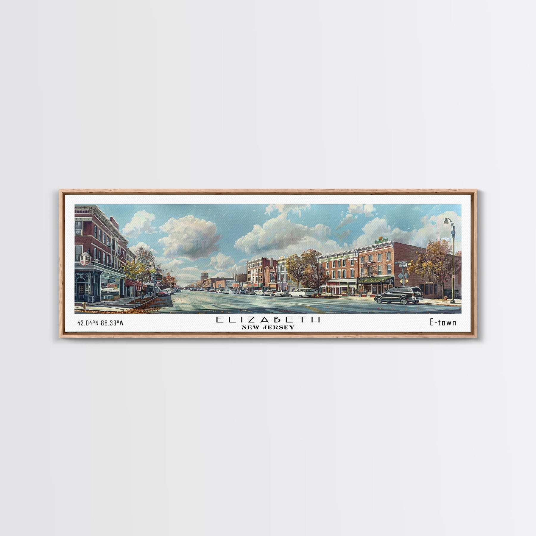 Elizabeth New Jersey Panoramic Watercolor Painting, Scenic Framed Canvas Print, Urban Wall Art for Office, Travel Decor, City Print, Gift Idea