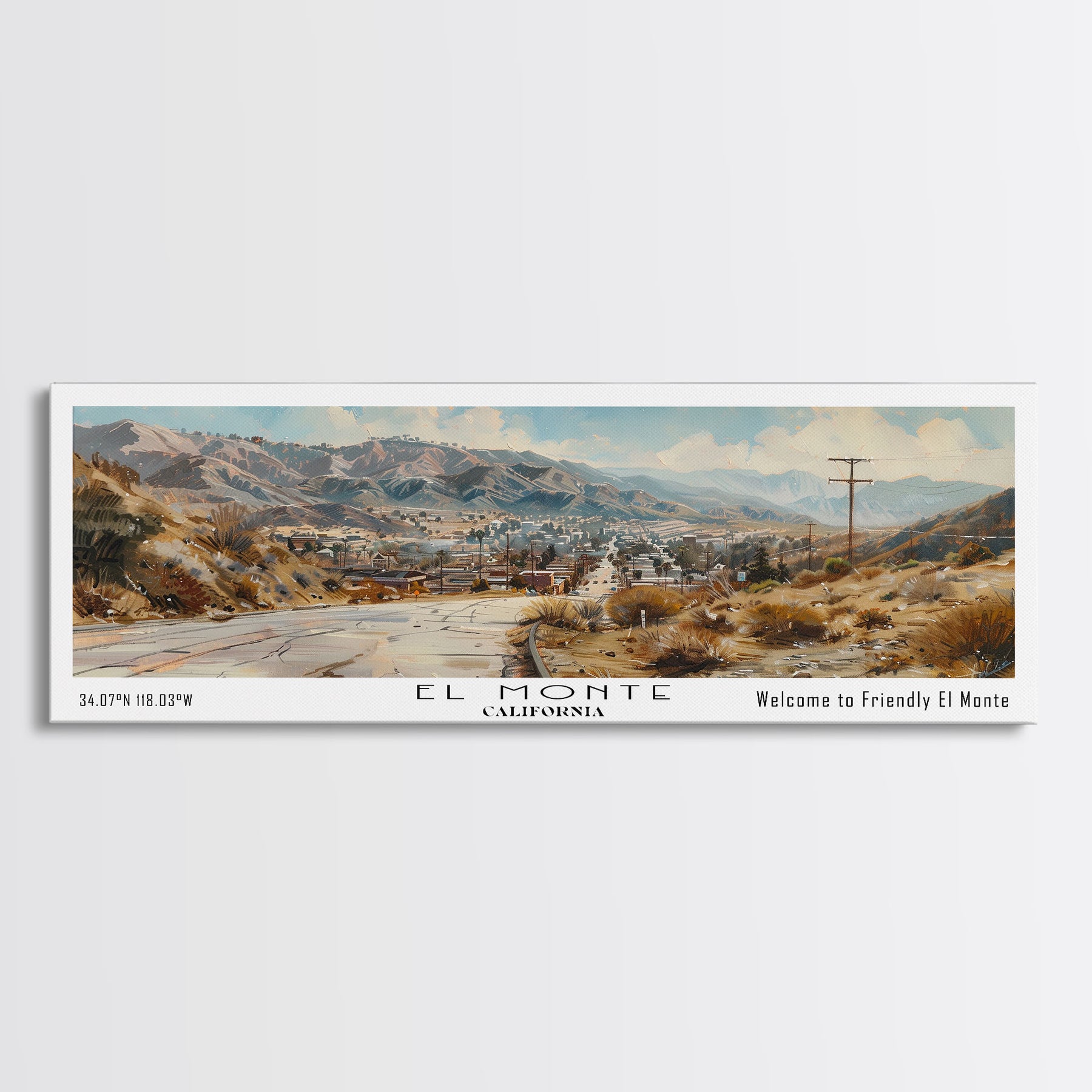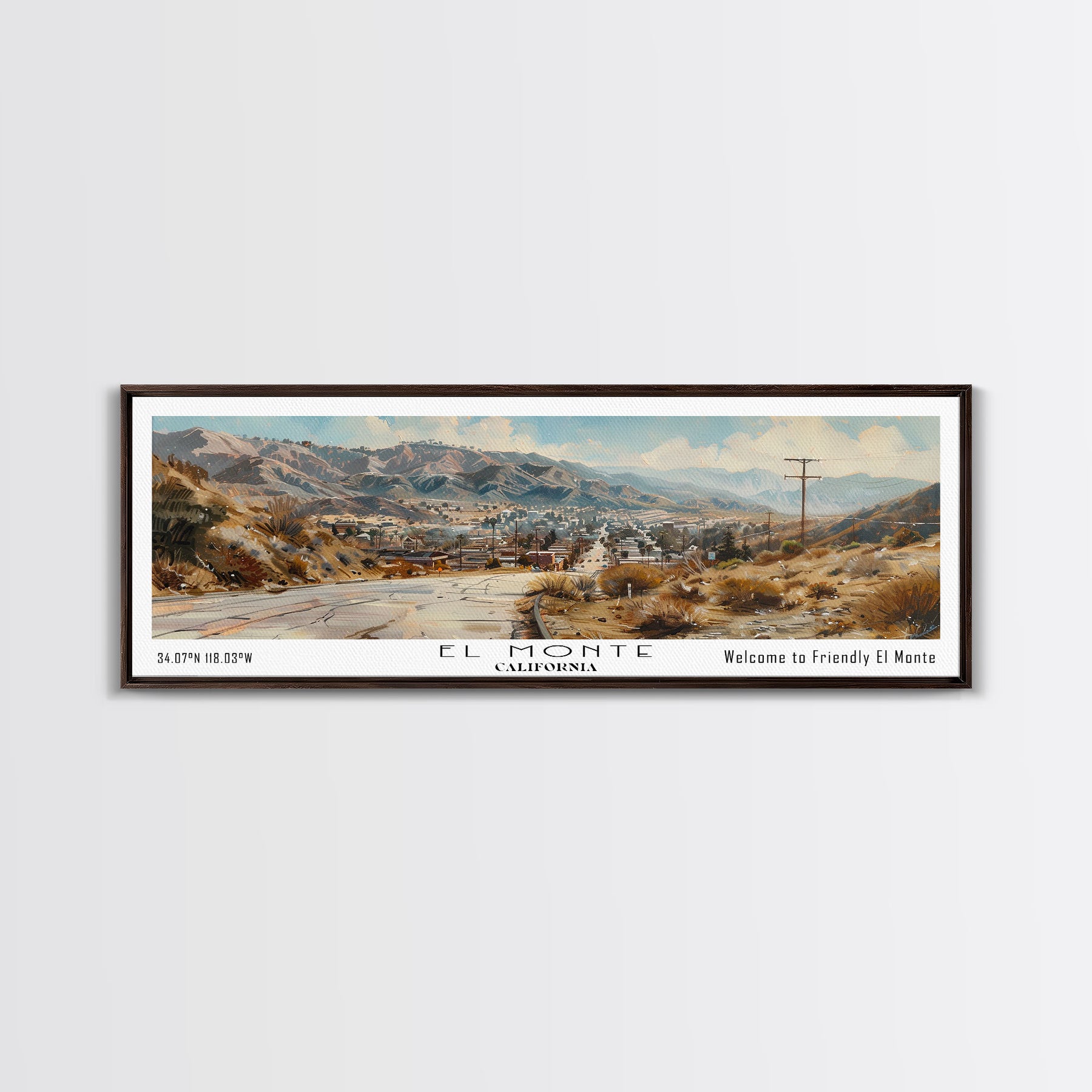 El Monte California Panoramic Watercolor Painting, Scenic Framed Canvas Print, Urban Wall Art for Office, Travel Decor, City Print, Gift Idea