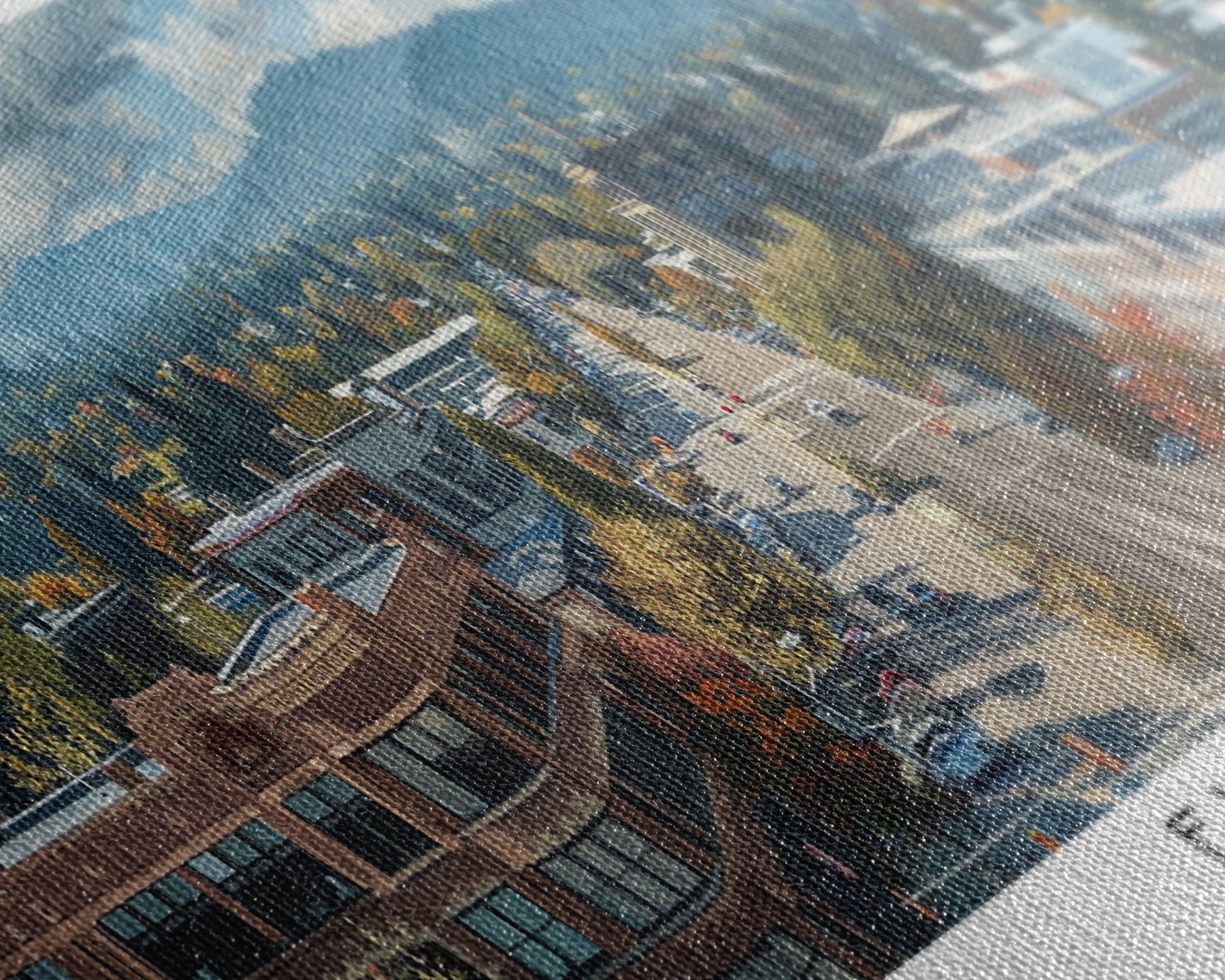 Most of our canvases are made in the USA, with the exception of canvases ordered with the light oak unstained frames, and any large canvases (24x48, 30x60, 16x48 and 20x60) ordered WITH a frame. These are temporarily made in and shipped from Europe, while we try to find a more consistent supplier in the USA.