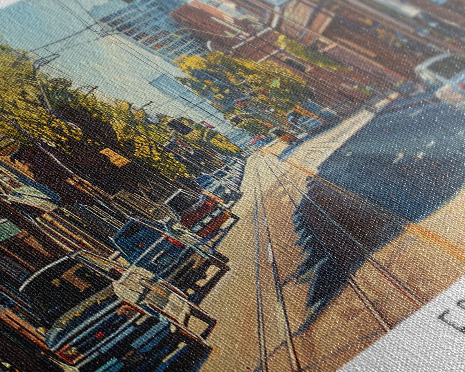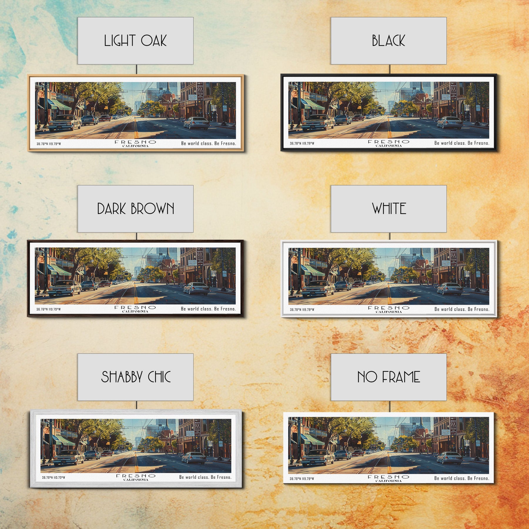 Fresno California Panoramic Watercolor Painting, Scenic Framed Canvas Print, Urban Wall Art for Living Room, Travel Decor, City Print, Gift Idea