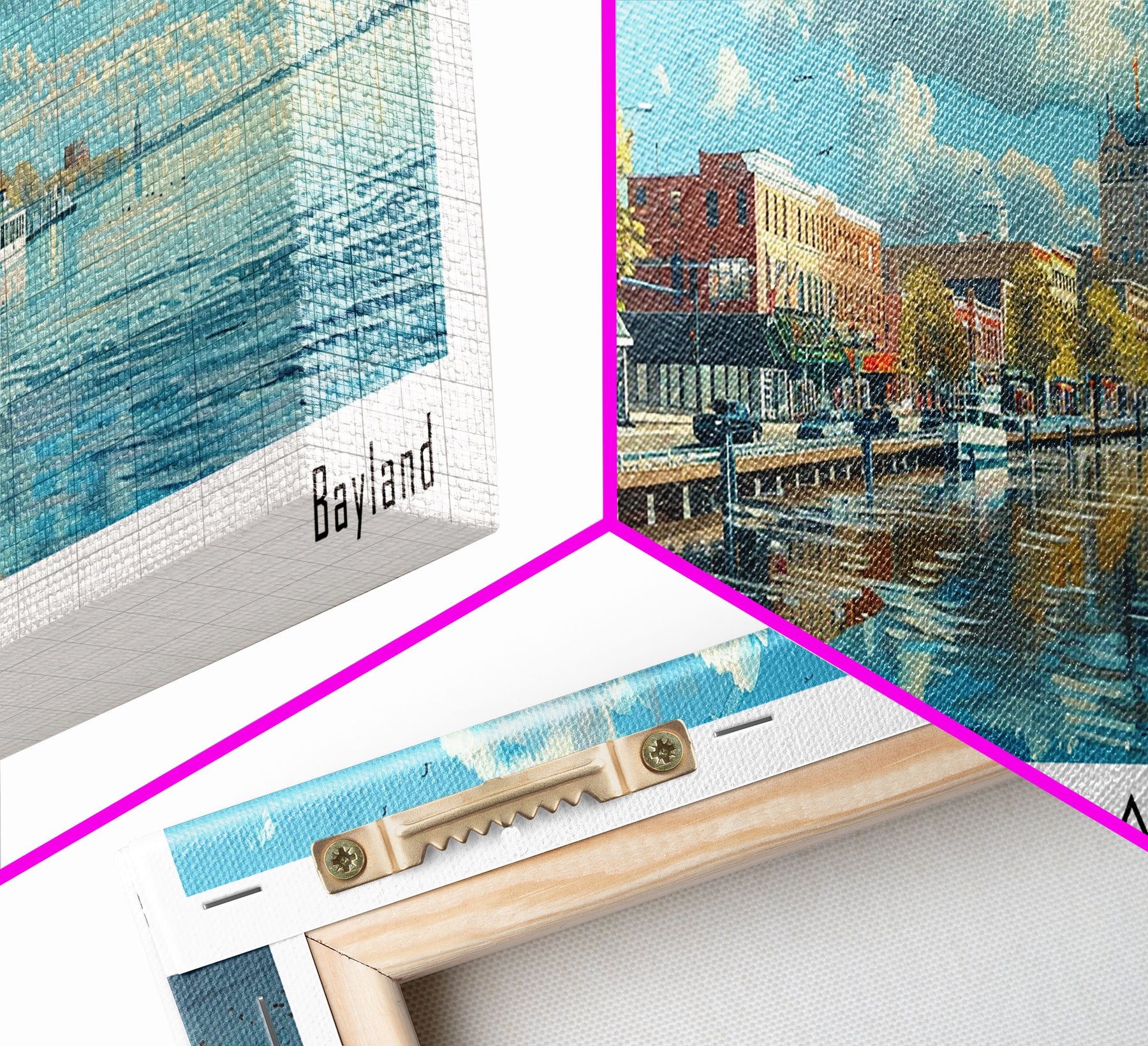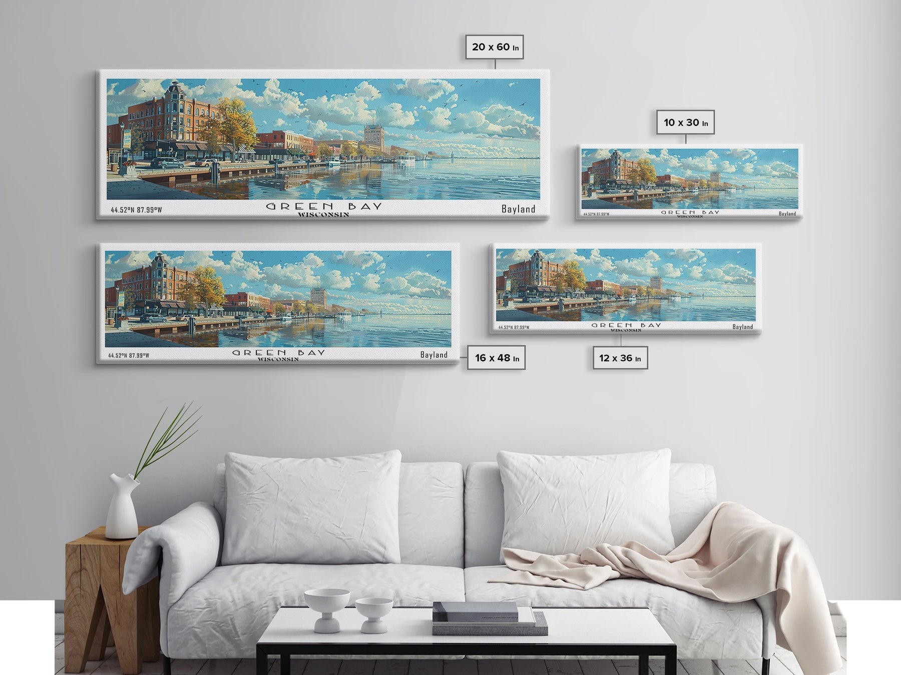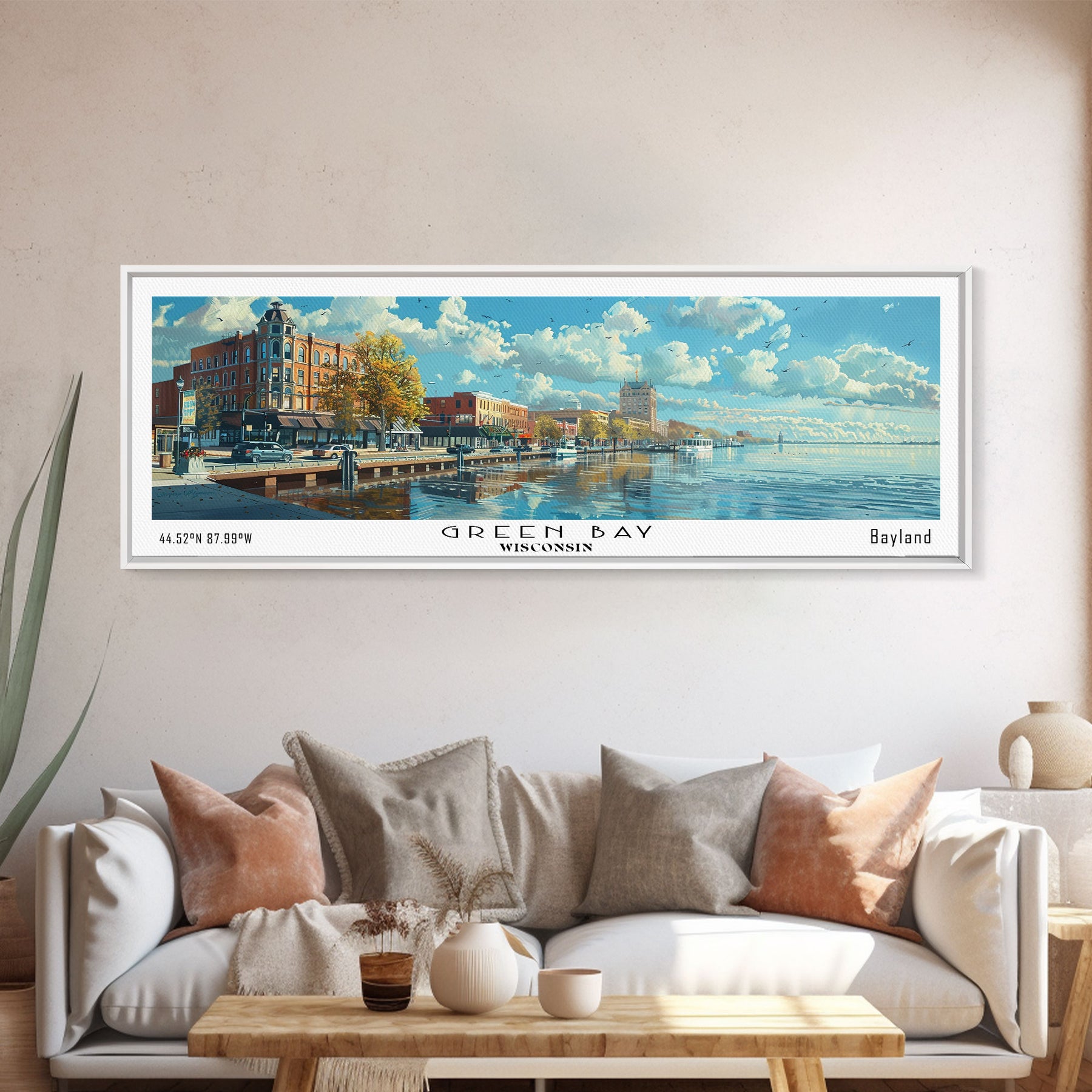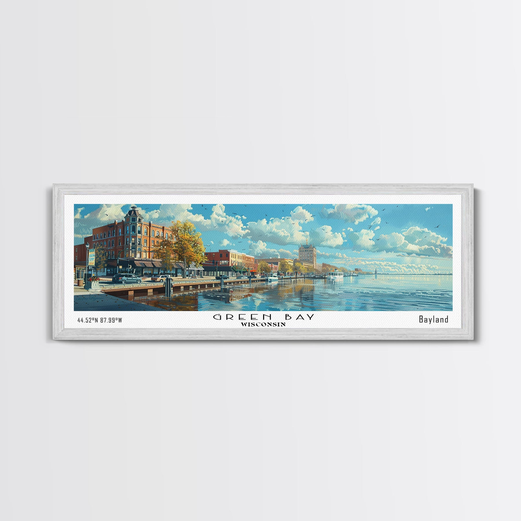 Green Bay Wisconsin Panoramic Watercolor Painting, Urban Framed Canvas Print, Cityscape Wall Art for Office, Travel Decor, Home Gift Idea
