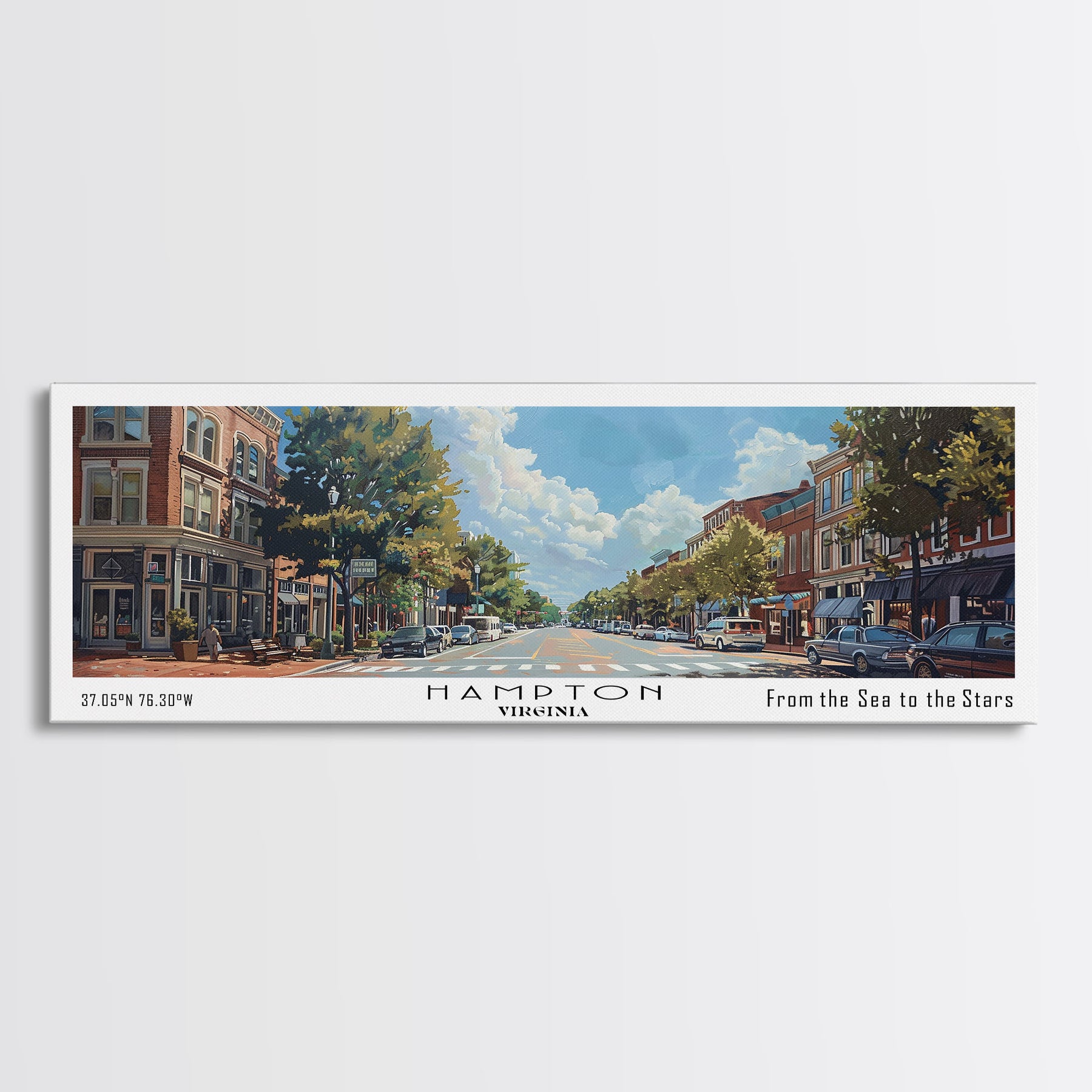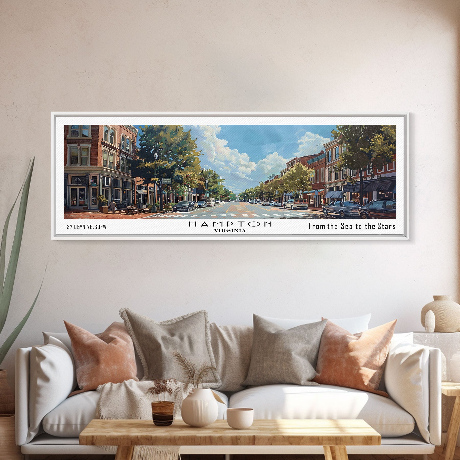 Hampton Virginia Panoramic Watercolor Painting, Urban Framed Canvas Print, Cityscape Wall Art for Living Room, Travel Poster, Home Decor, City Gift Idea