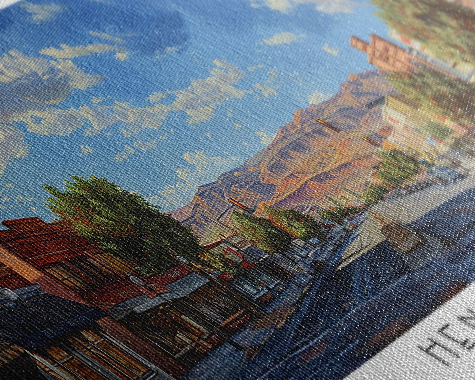 Most of our canvases are made in the USA, with the exception of canvases ordered with the light oak unstained frames, and any large canvases (24x48, 30x60, 16x48 and 20x60) ordered WITH a frame. These are temporarily made in and shipped from Europe, while we try to find a more consistent supplier in the USA.