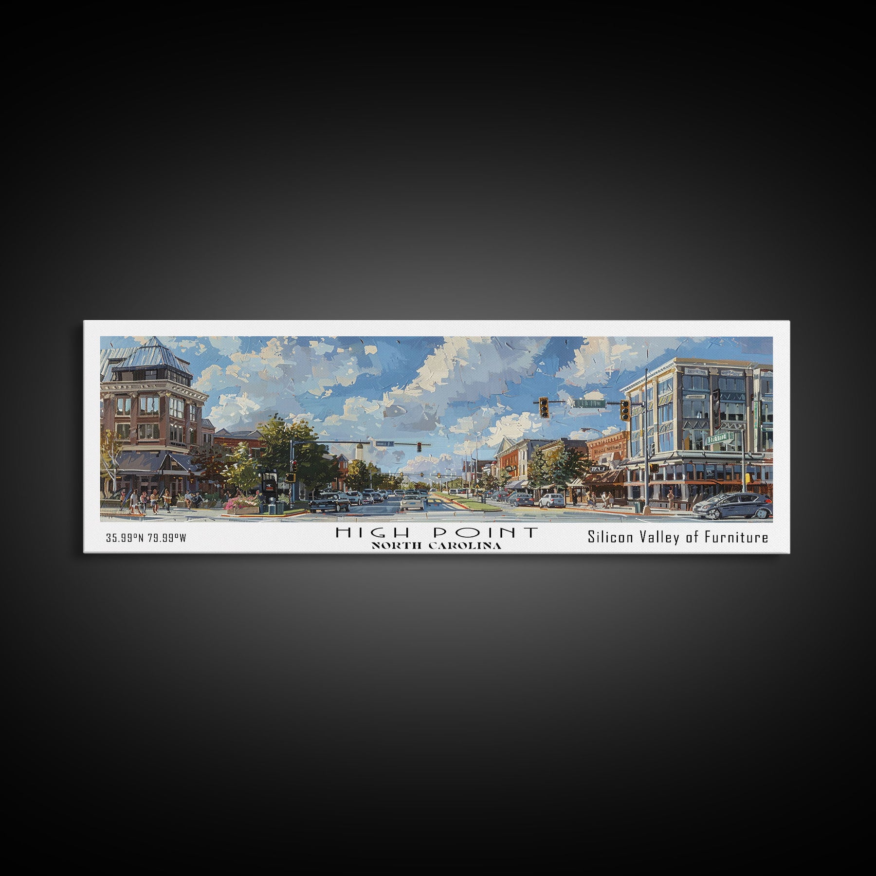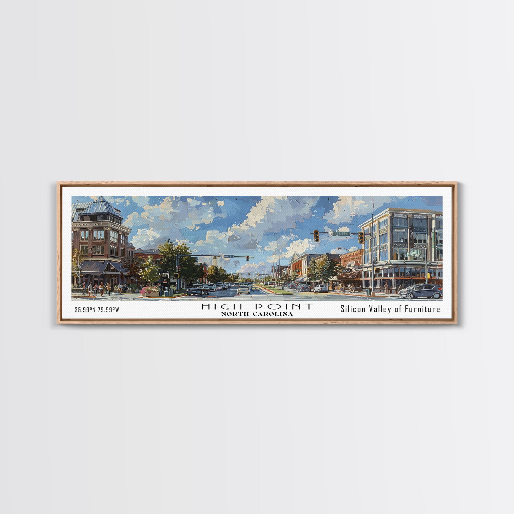 High Point North Carolina Panoramic Watercolor Painting, Urban Framed Canvas Print, Cityscape Wall Art for Office, Travel Decor, Home Gift Idea