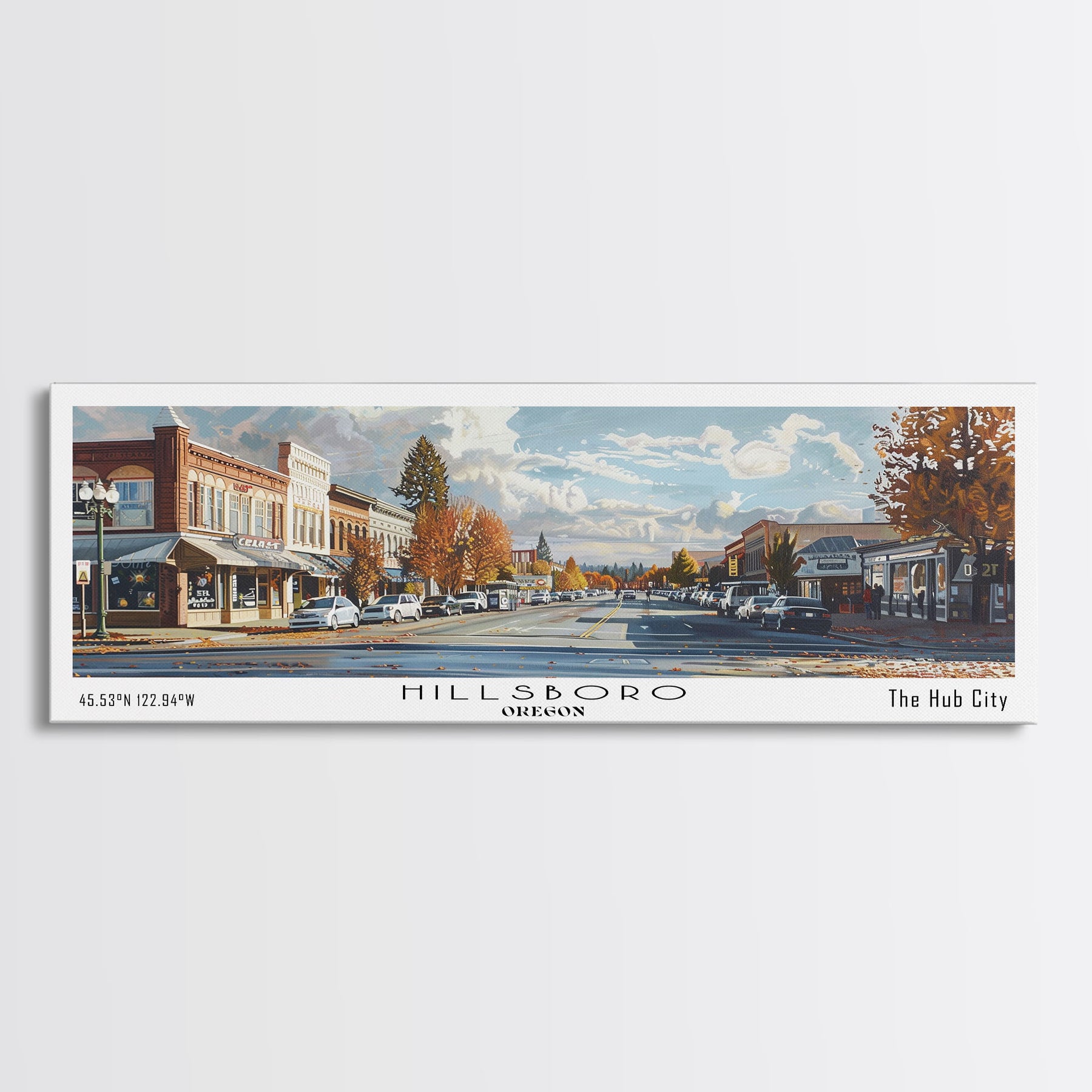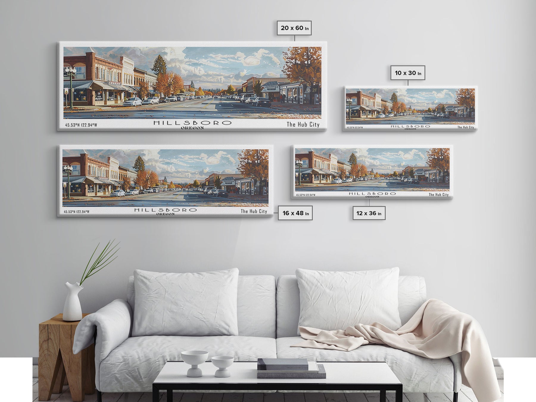 Hillsboro Oregon Panoramic Watercolor Painting, Urban Framed Canvas Print, Cityscape Wall Art for Office, Travel Decor, Home Gift Idea