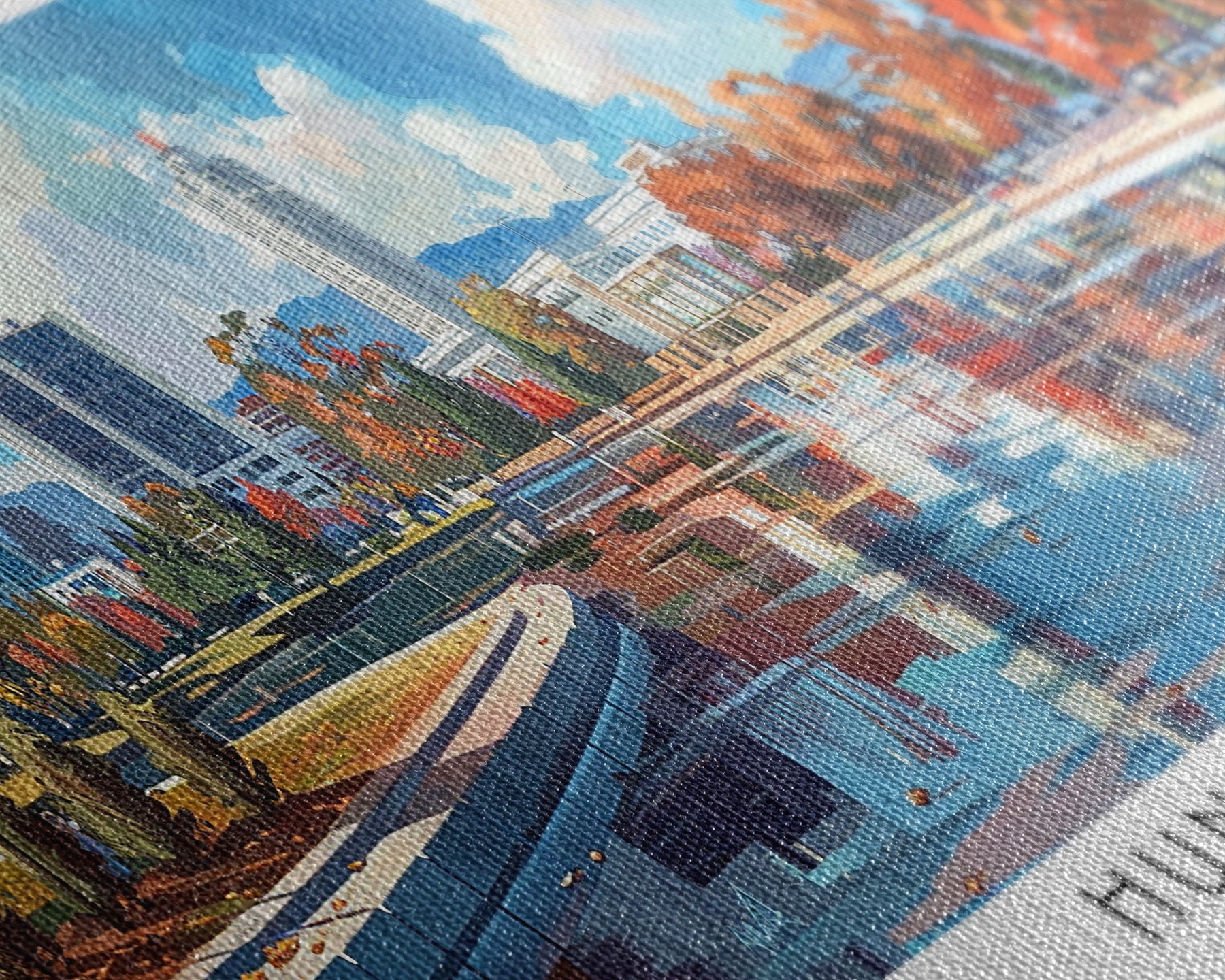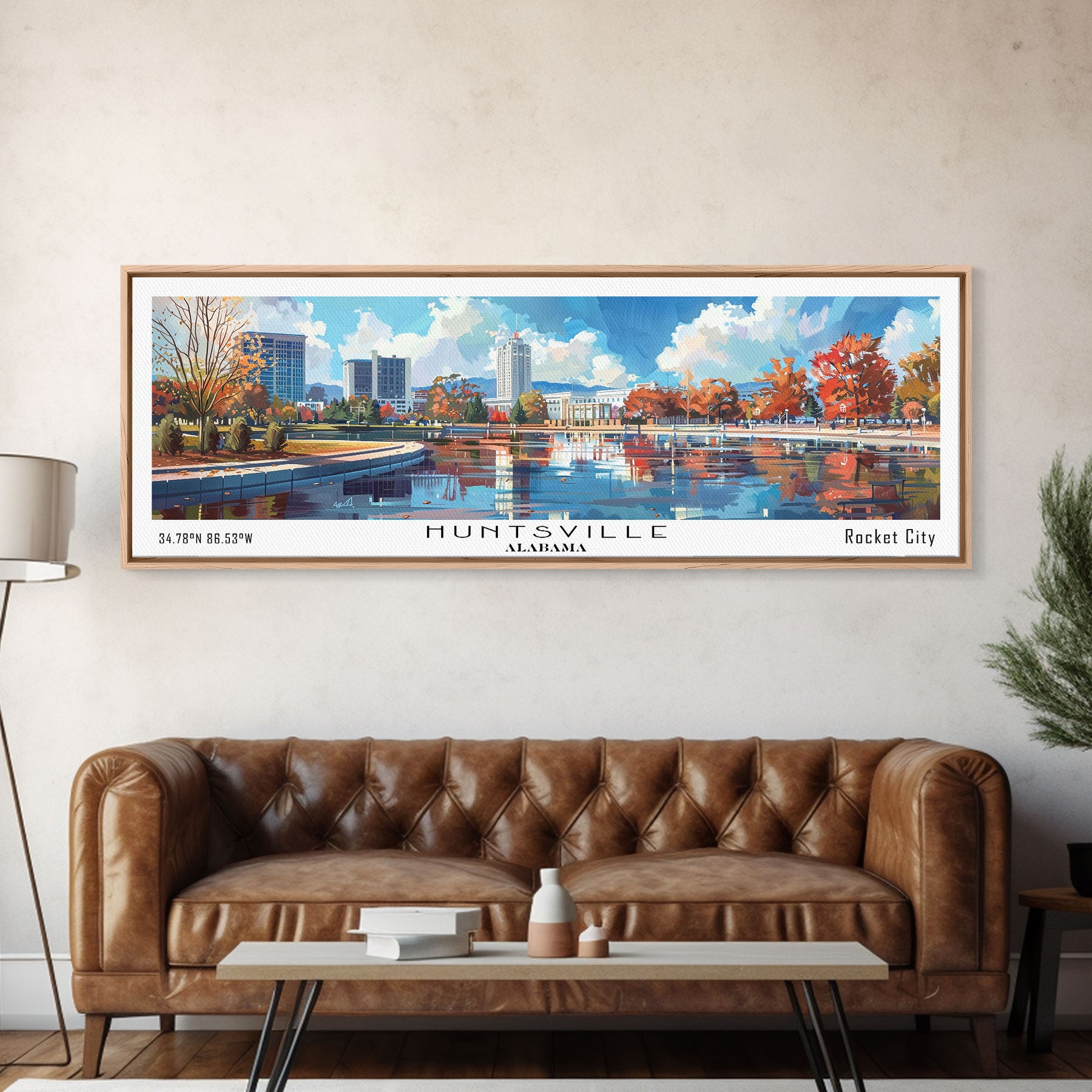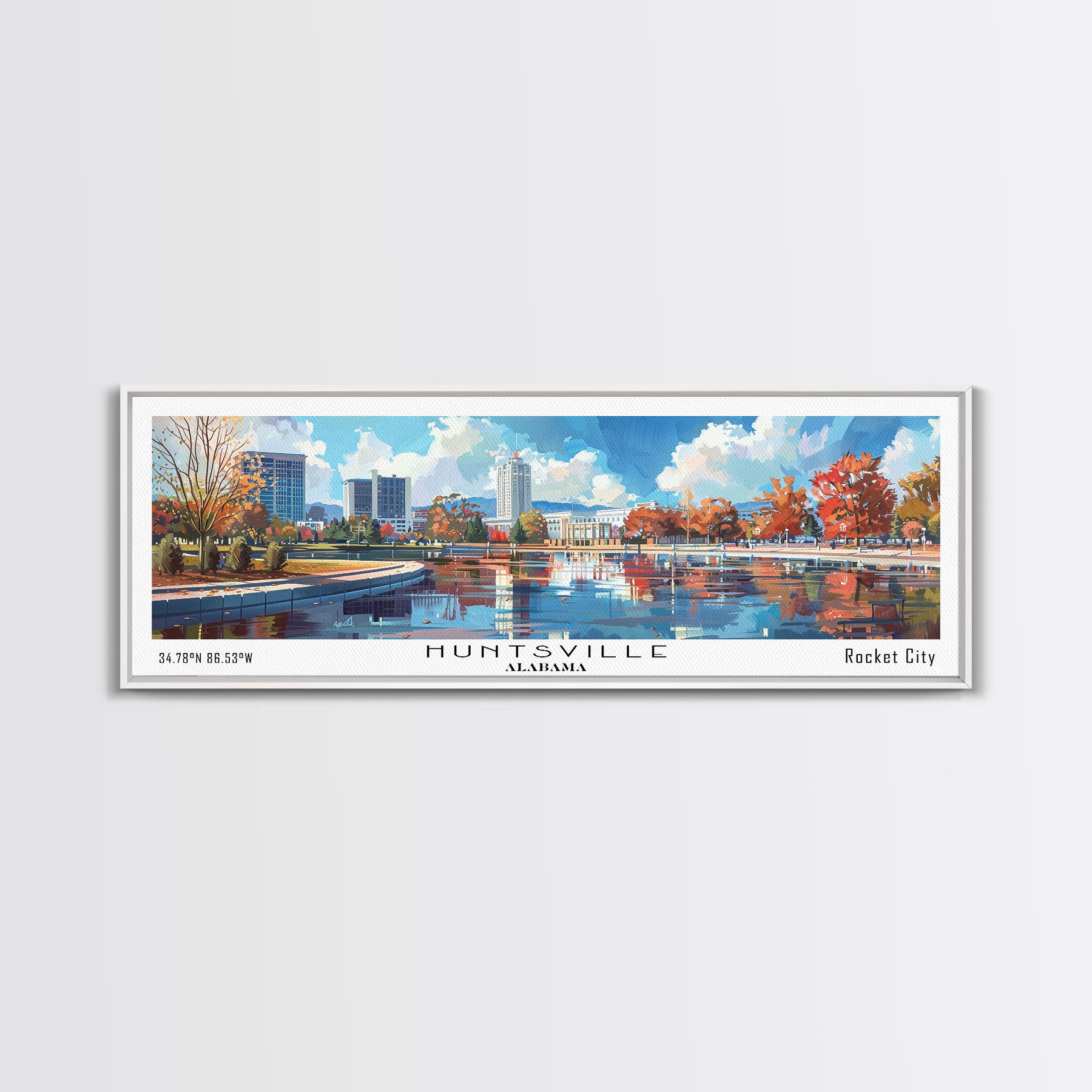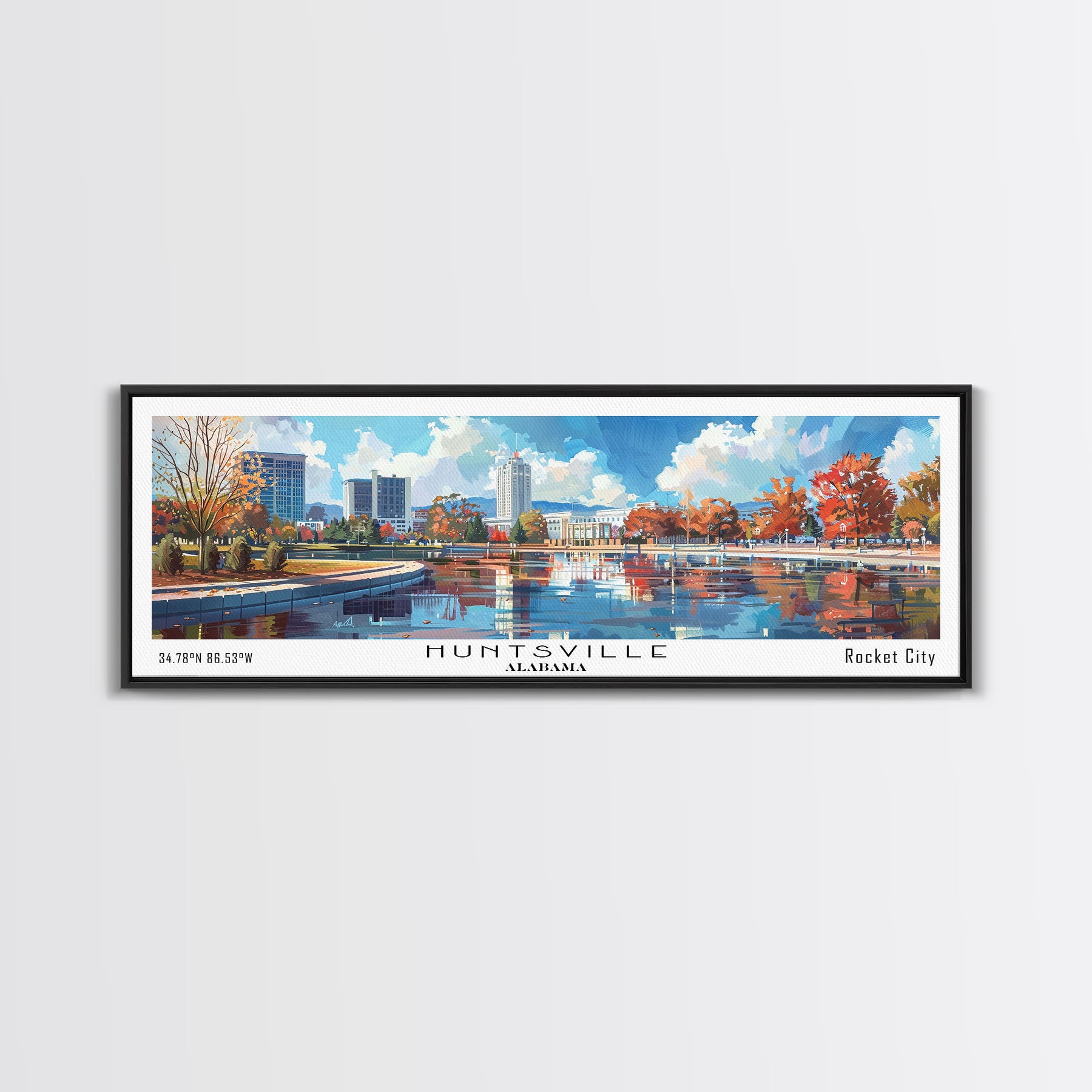 Huntsville Alabama Panoramic Watercolor Painting, Urban Framed Canvas Print, Cityscape Wall Art for Office, Travel Decor, Home Gift Idea