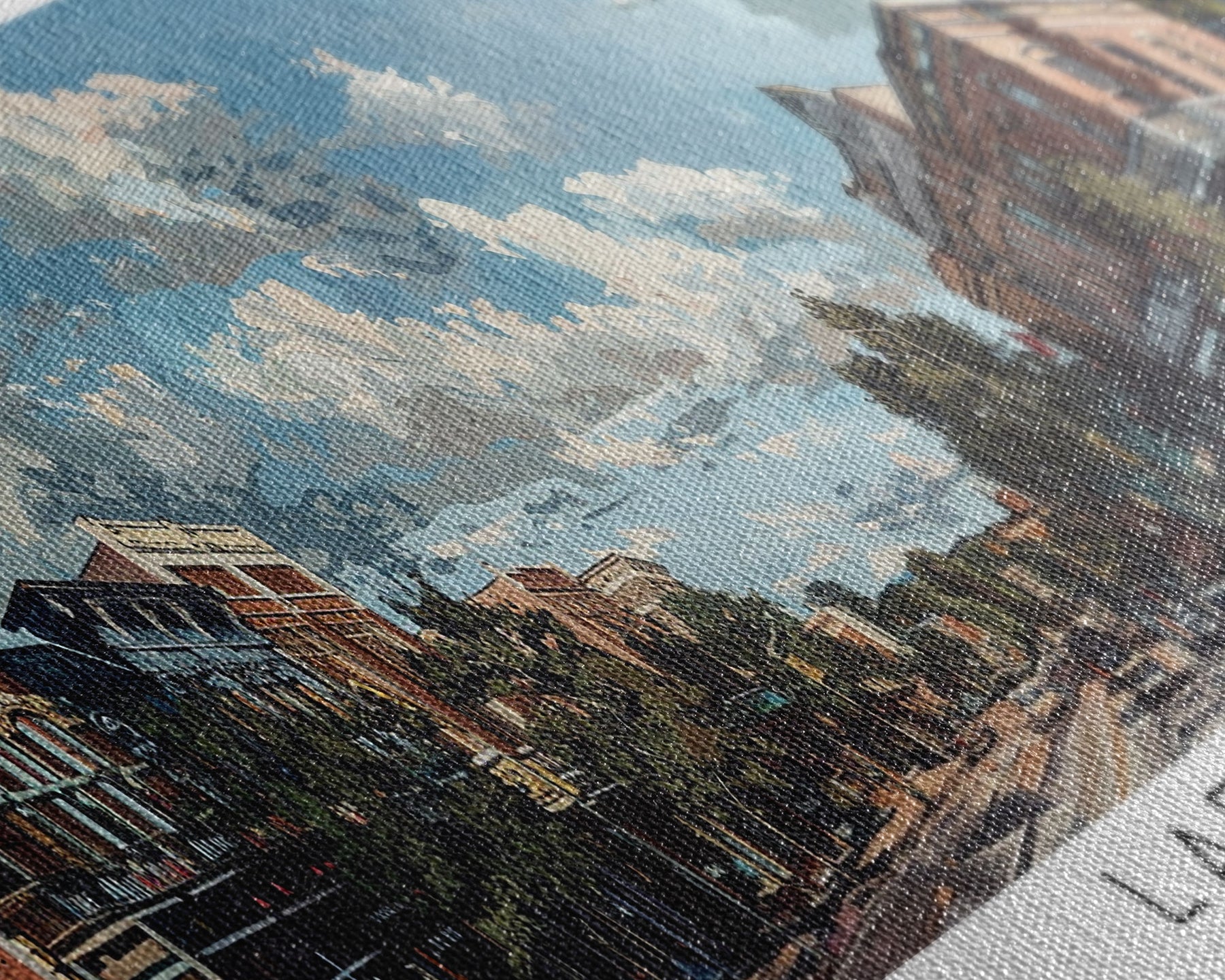 Most of our canvases are made in the USA, with the exception of canvases ordered with the light oak unstained frames, and any large canvases (24x48, 30x60, 16x48 and 20x60) ordered WITH a frame. These are temporarily made in and shipped from Europe, while we try to find a more consistent supplier in the USA.