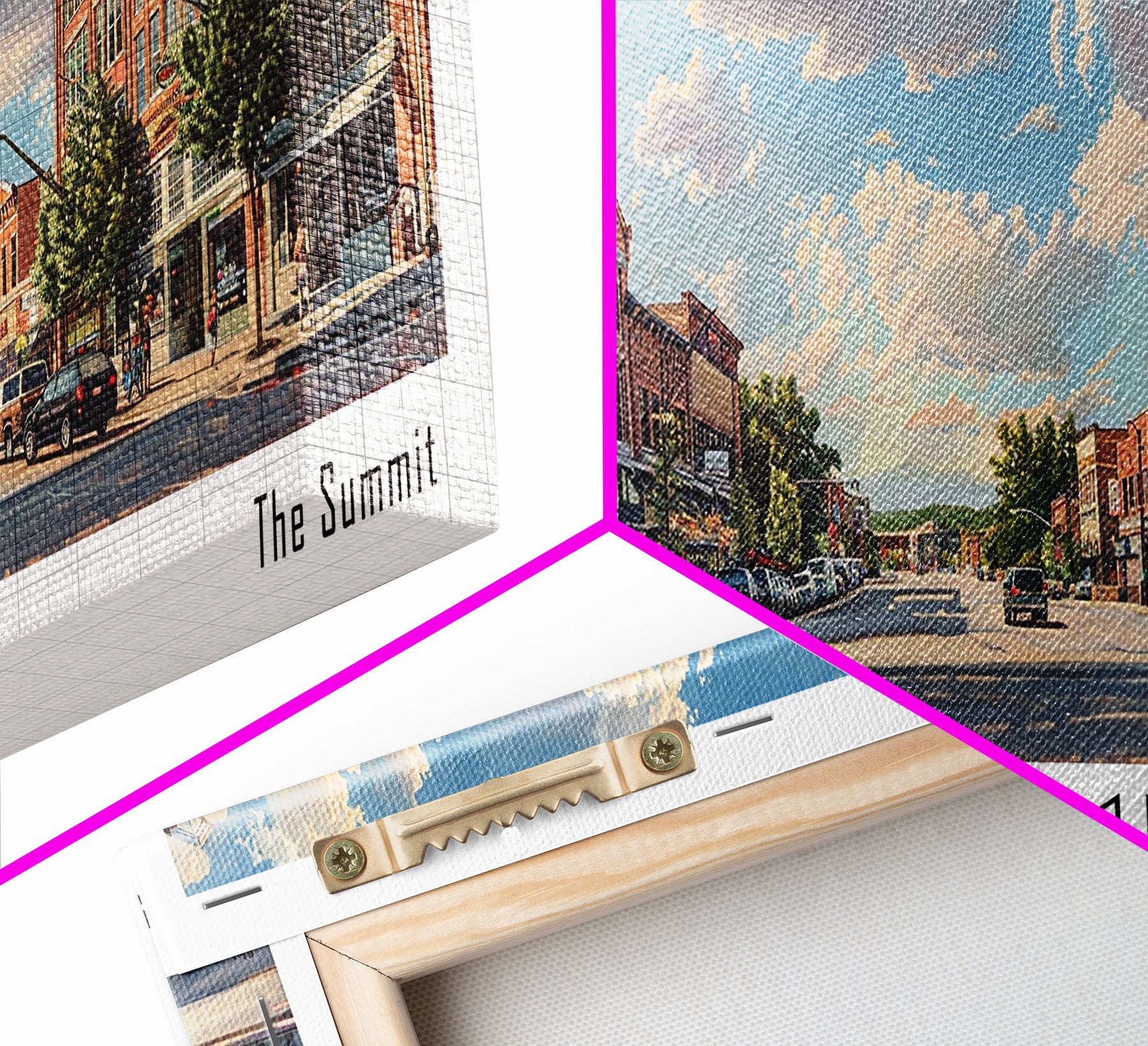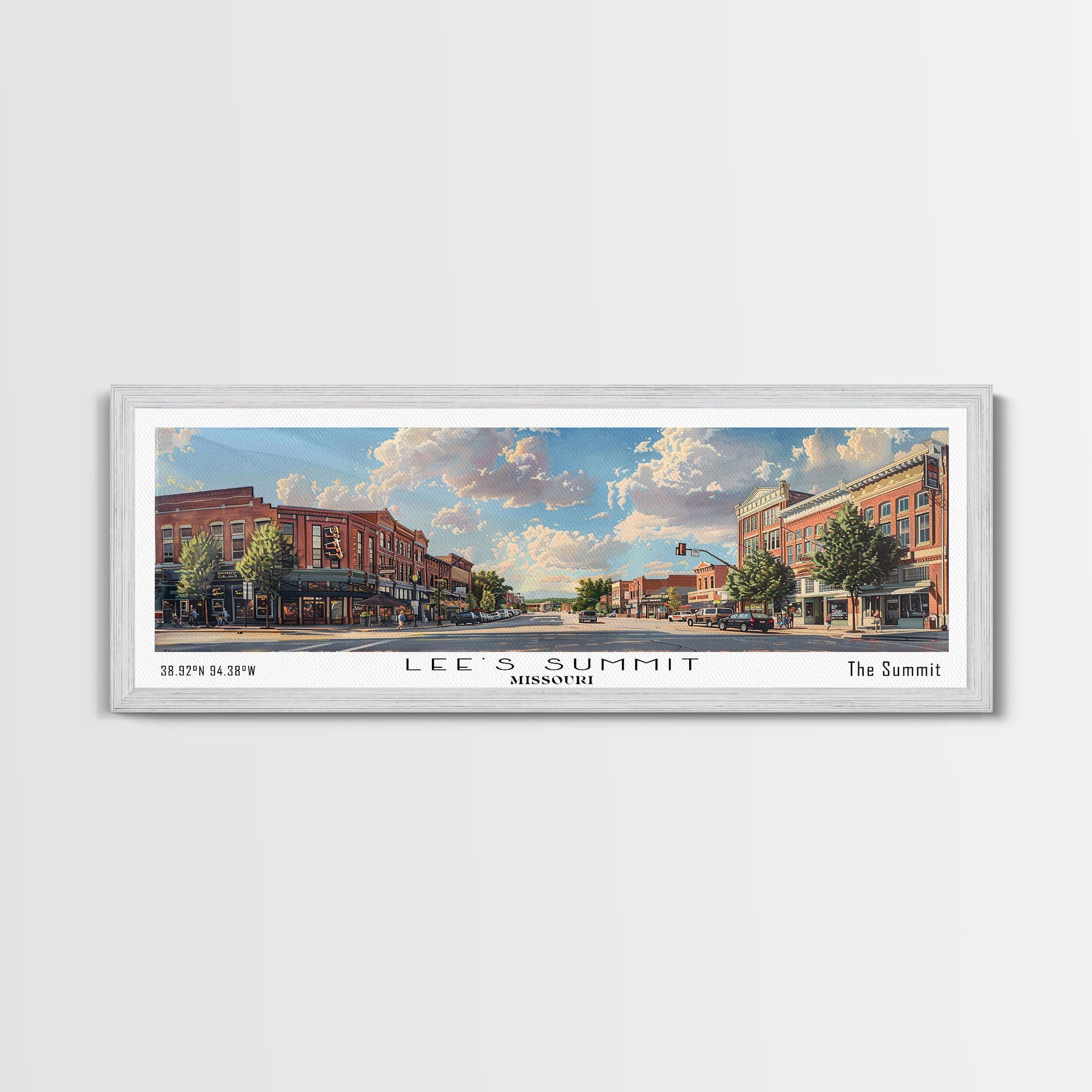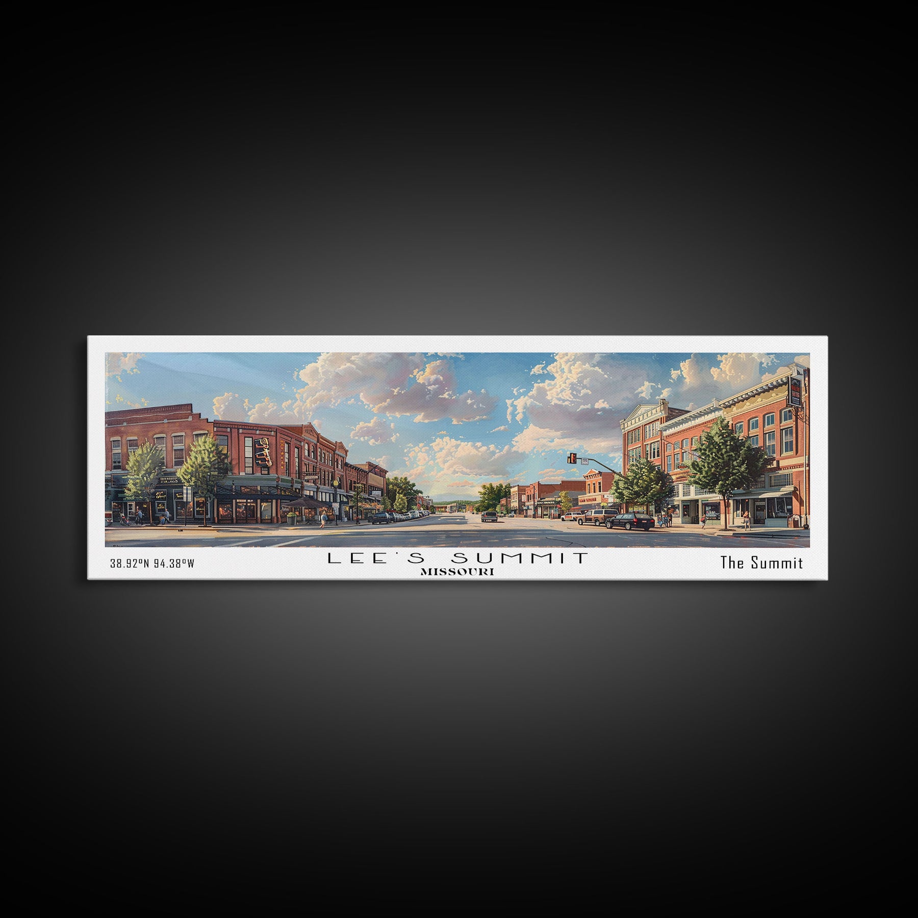 Lees Summit Missouri Panoramic Watercolor Cityscape, Framed Canvas Print for Living Room, Office Wall Art, Urban Decor, Travel Poster