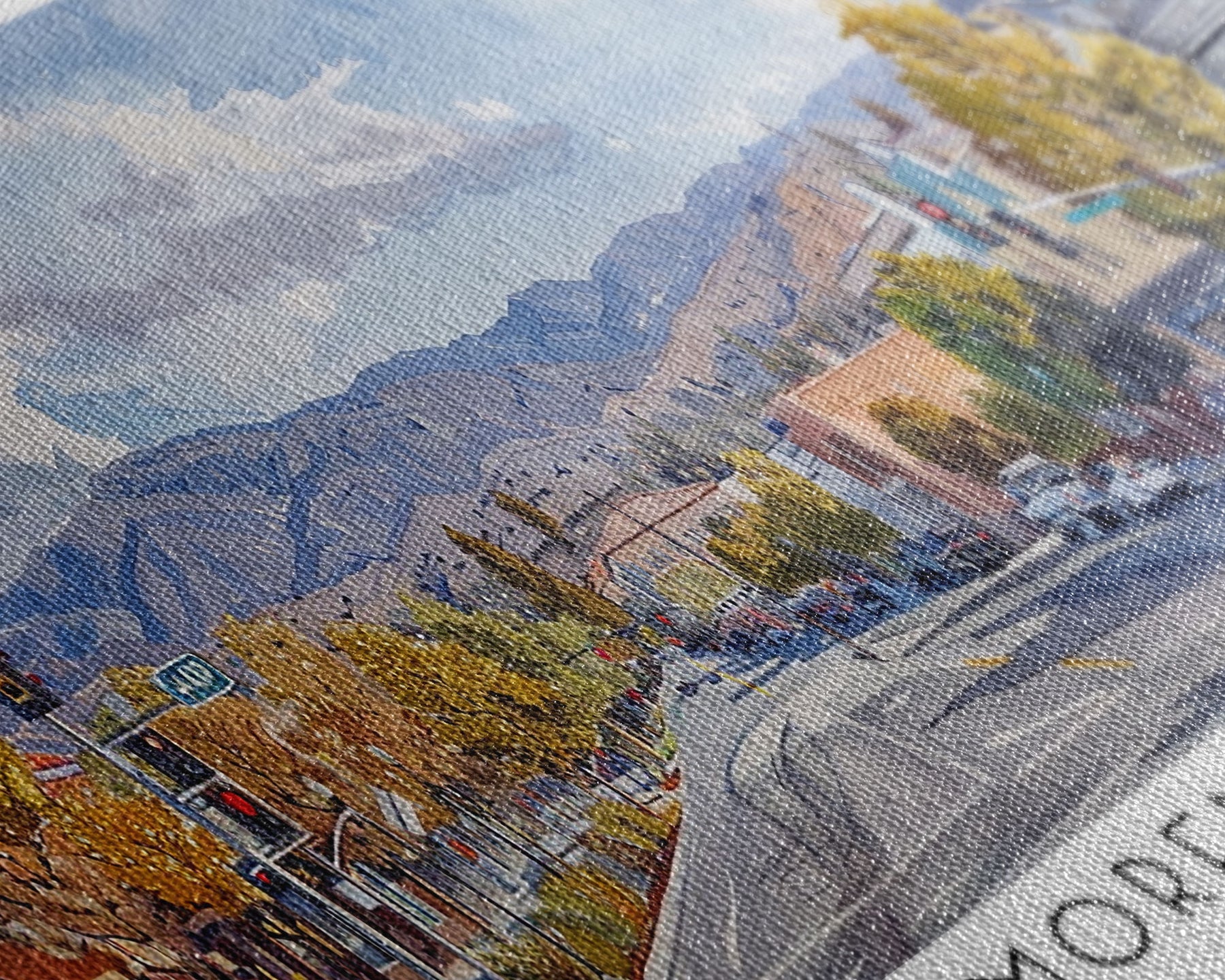 Most of our canvases are made in the USA, with the exception of canvases ordered with the light oak unstained frames, and any large canvases (24x48, 30x60, 16x48 and 20x60) ordered WITH a frame. These are temporarily made in and shipped from Europe, while we try to find a more consistent supplier in the USA.