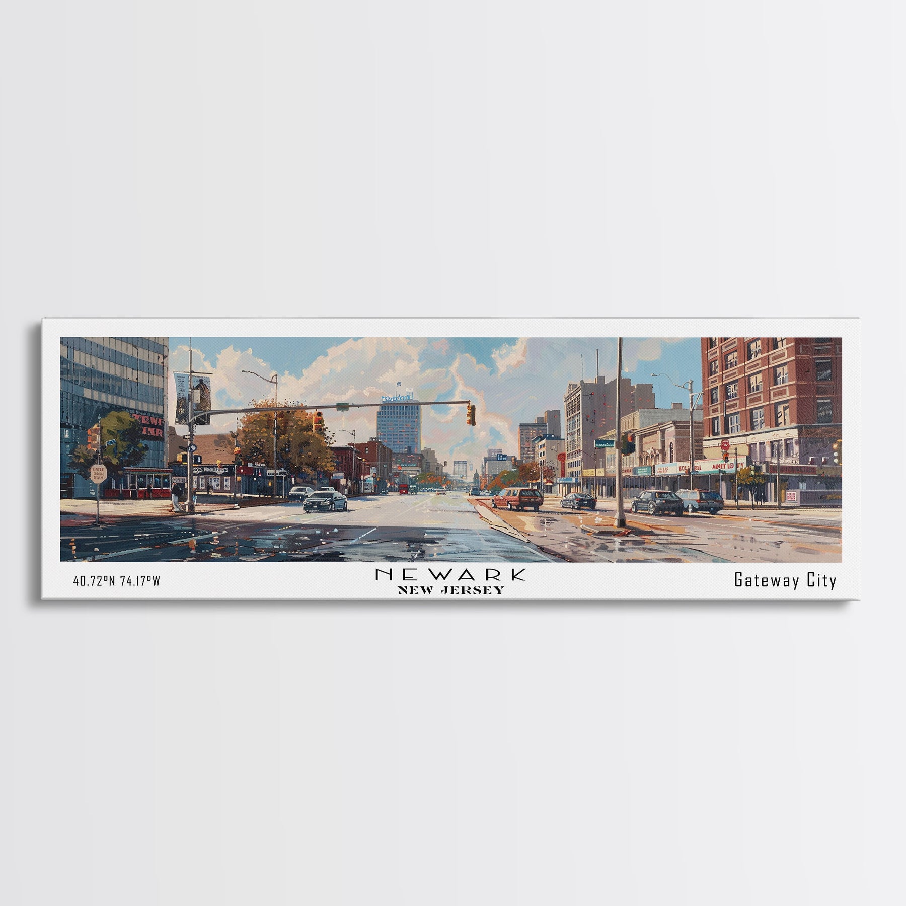 Newark New Jersey Panoramic Framed Canvas Print, Beautiful Watercolor Painting, Office Wall Art, Travel Poster, Home Decor, City Art