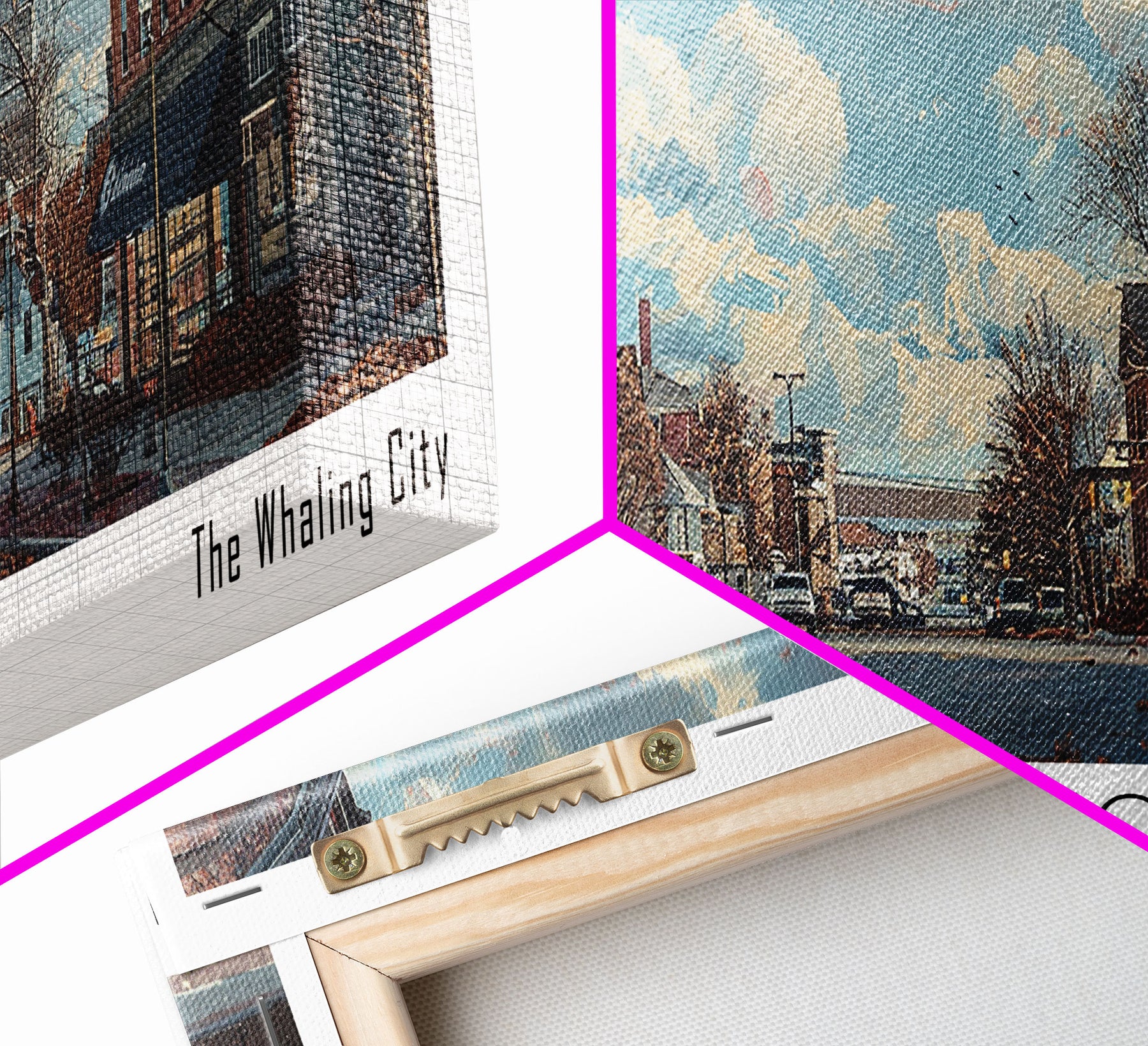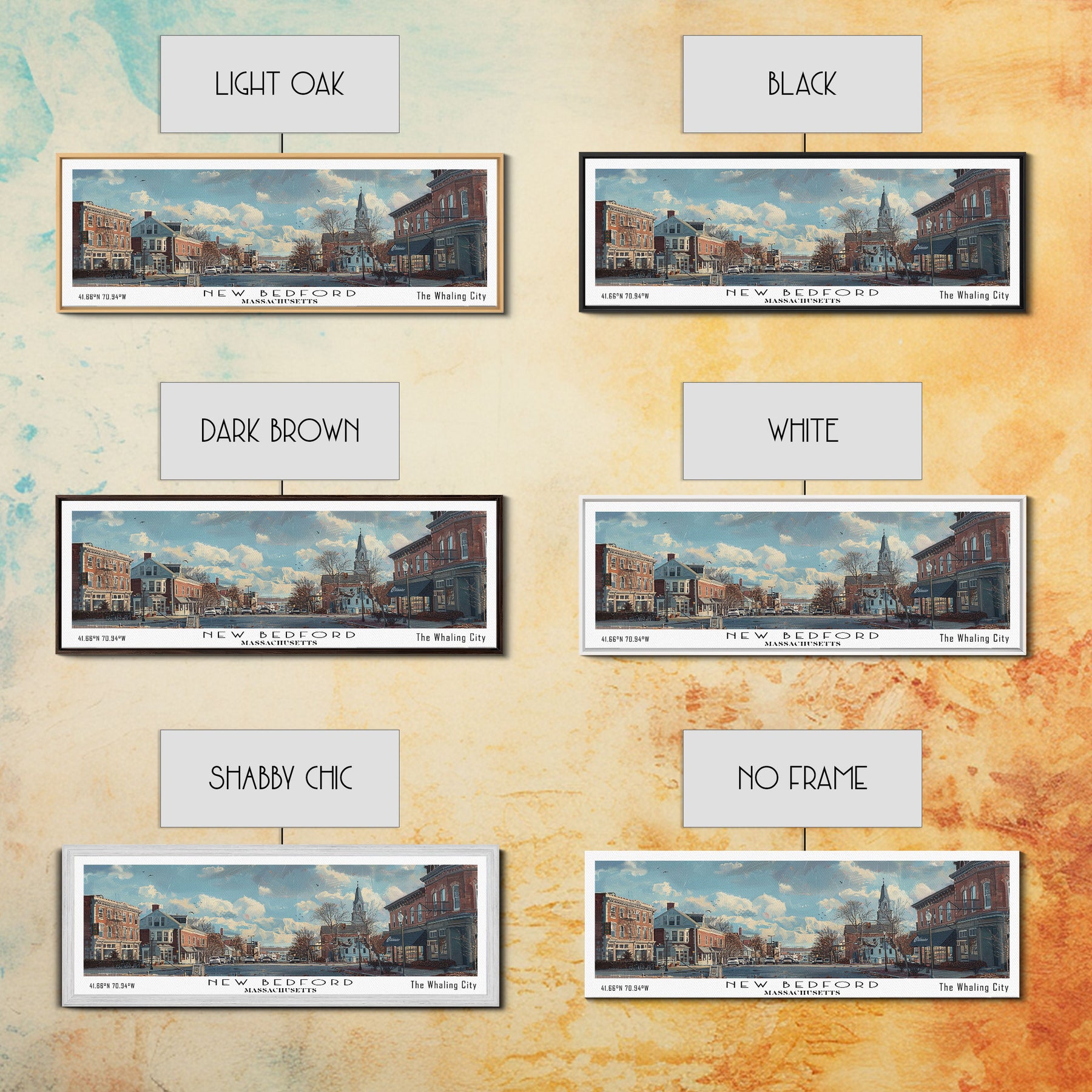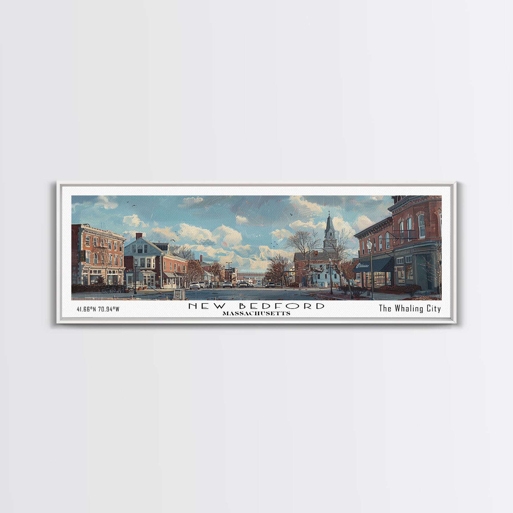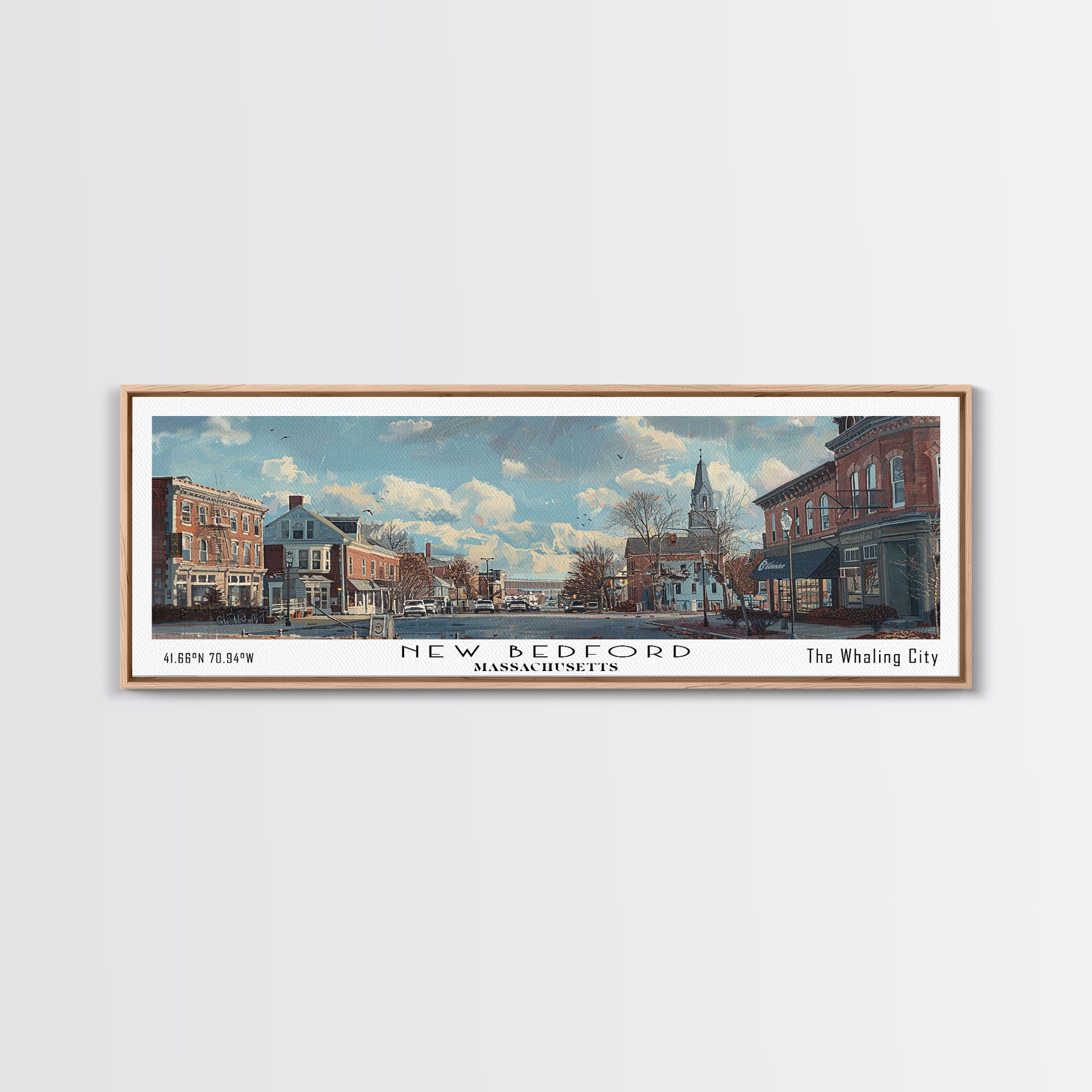 New Bedford Massachusetts Panoramic Framed Canvas Print, Stunning Watercolor Cityscape, Office Wall Art, Travel Poster, Home Decor