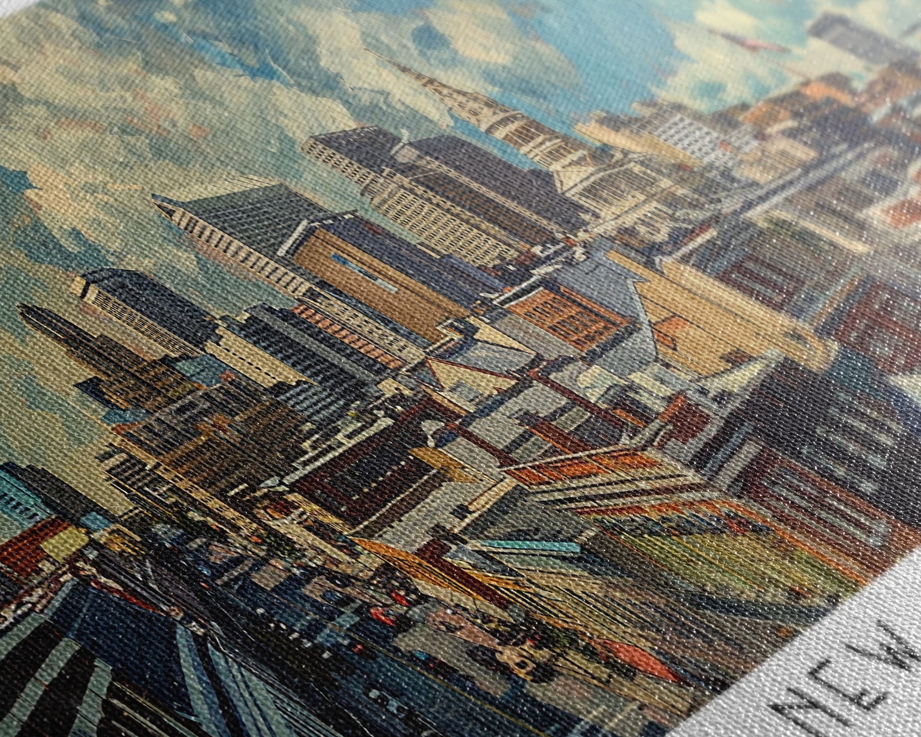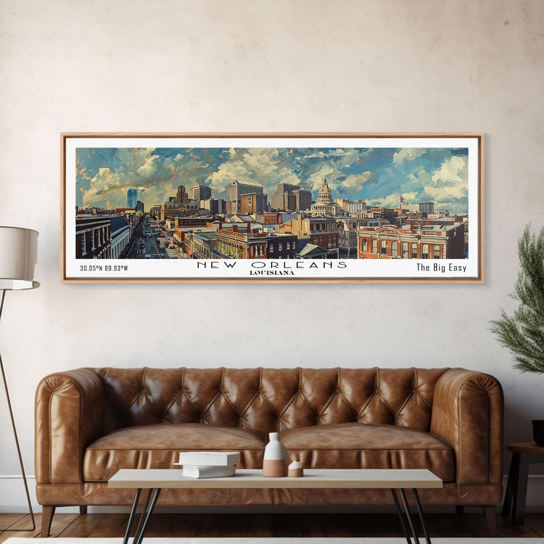 New Orleans Louisiana Panoramic Painting, Framed Canvas Print for Home Decor, Unique Watercolor Art, Travel Poster, Cityscape Gift Idea