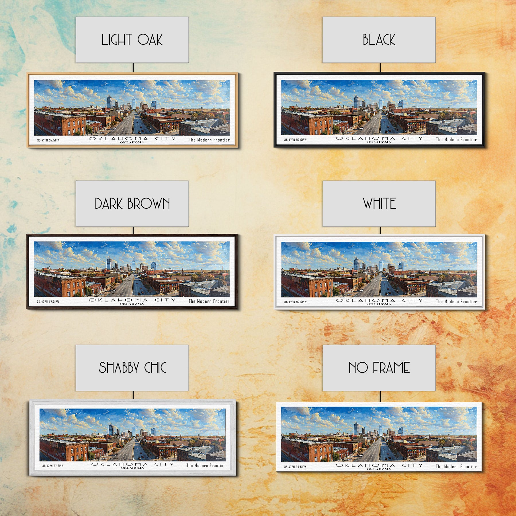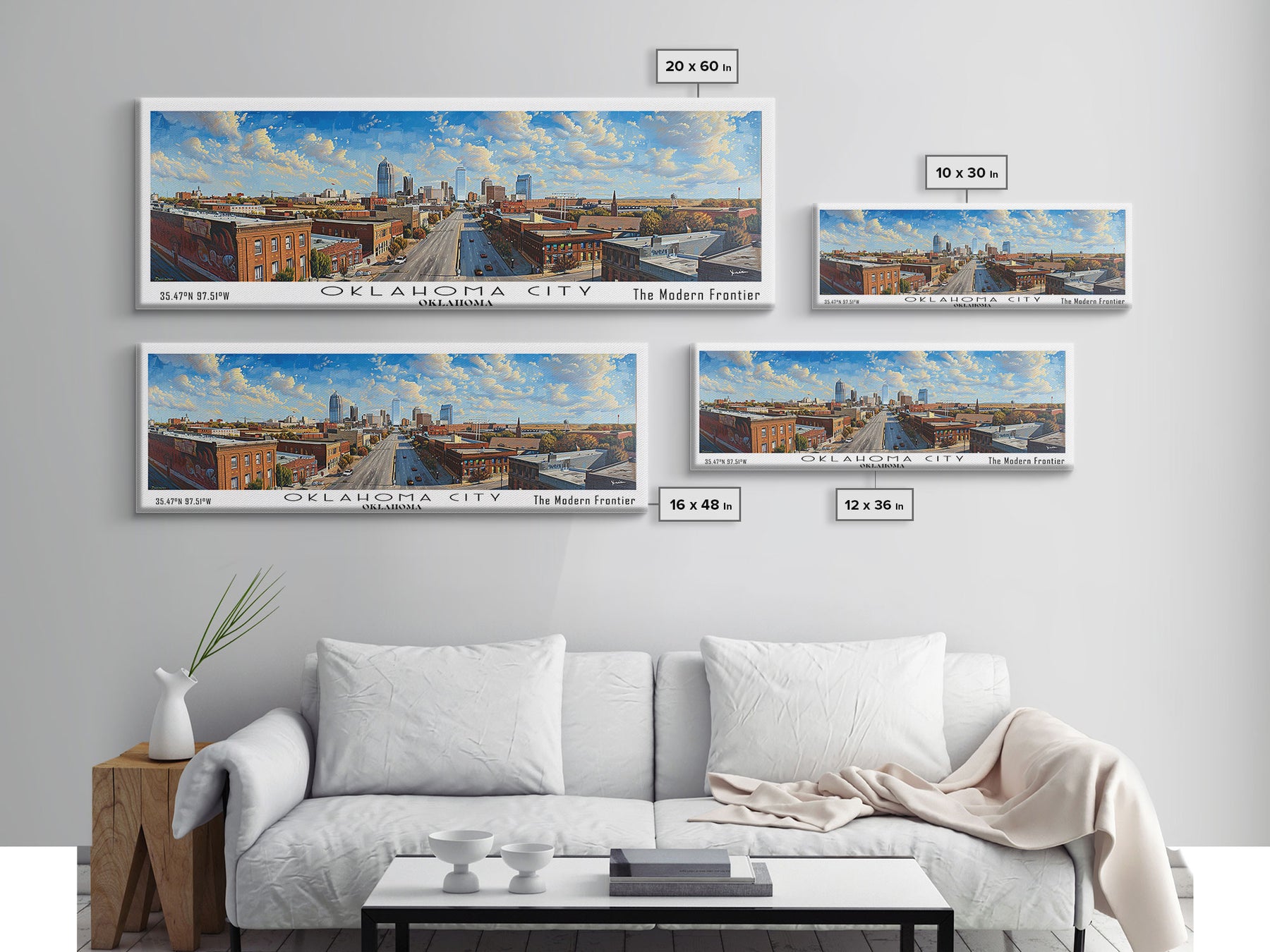 Oklahoma City Oklahoma Panoramic Framed Canvas Print, Cityscape Watercolor Painting, Travel Poster, Home Decor, Unique Gift Idea, Urban Art